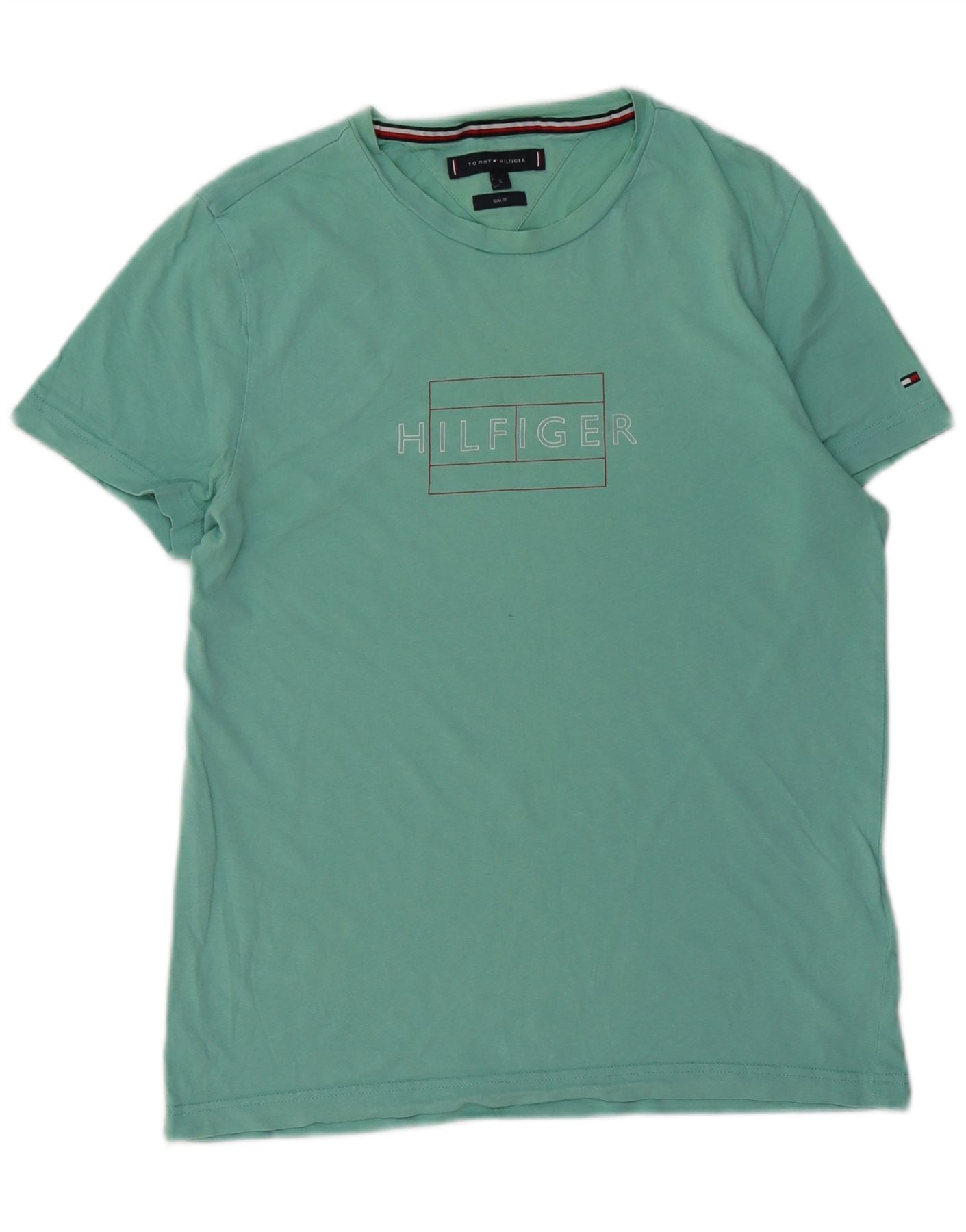 TOMMY HILFIGER T-shirt grafica da uomo slim fit Top piccolo in cotone verde