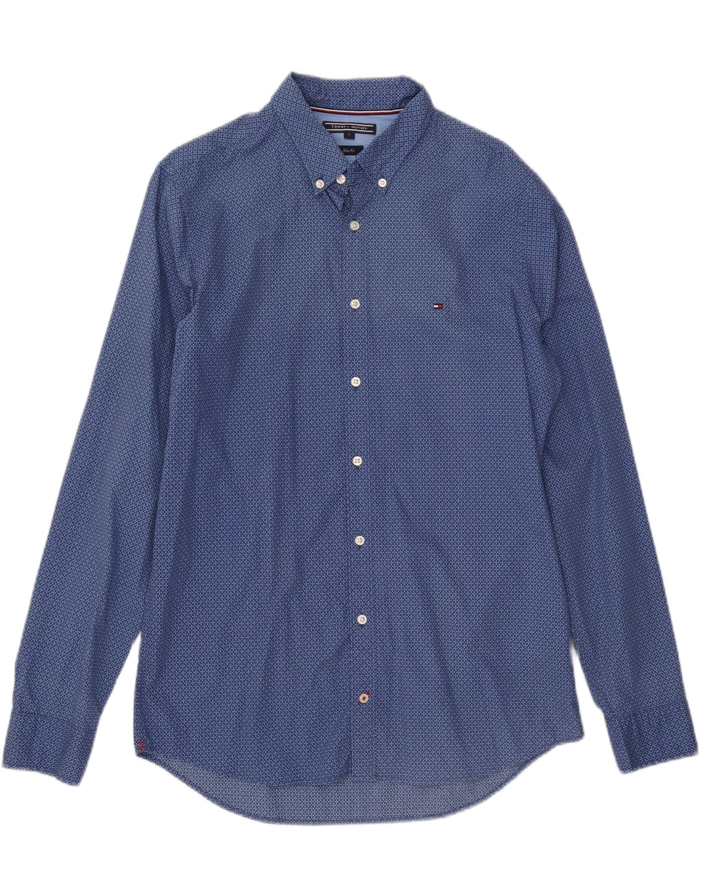 TOMMY HILFIGER Camicia slim fit da uomo grande cotone geometrico blu