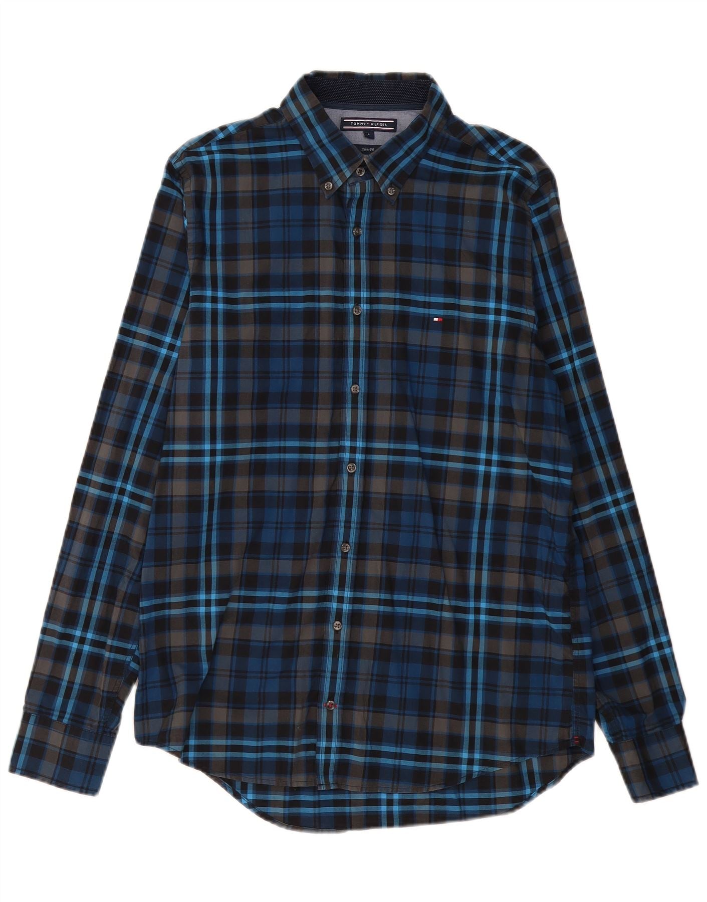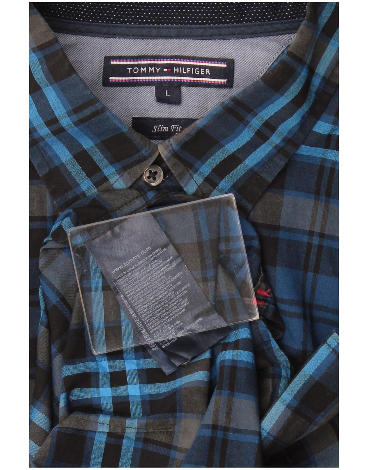 TOMMY HILFIGER Camicia slim fit da uomo grande in cotone a quadri blu navy