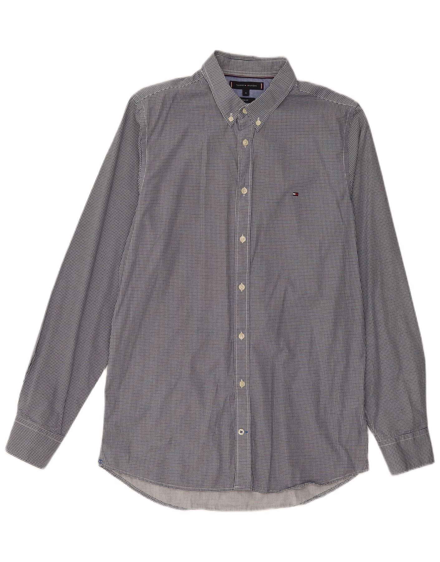 - Descrizione dell'IA: Questa camicia da uomo Tommy Hilfiger è realizzata in tessuto di cotone al 100%. Presenta un vivace motivo a quadri blu per un look raffinato. Lo scollo con colletto e l'intera abbottonatura frontale offrono un fascino classico. Le maniche lunghe con dettagli con risvolto completano la silhouette elegante. La sua vestibilità slim offre un'estetica moderna e su misura. Un sottile logo ricamato aggiunge un tocco distintivo.