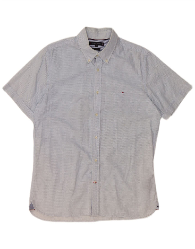 TOMMY HILFIGER Mens Slim Fit Short Sleeve Shirt Large Blue Spotted Cotton