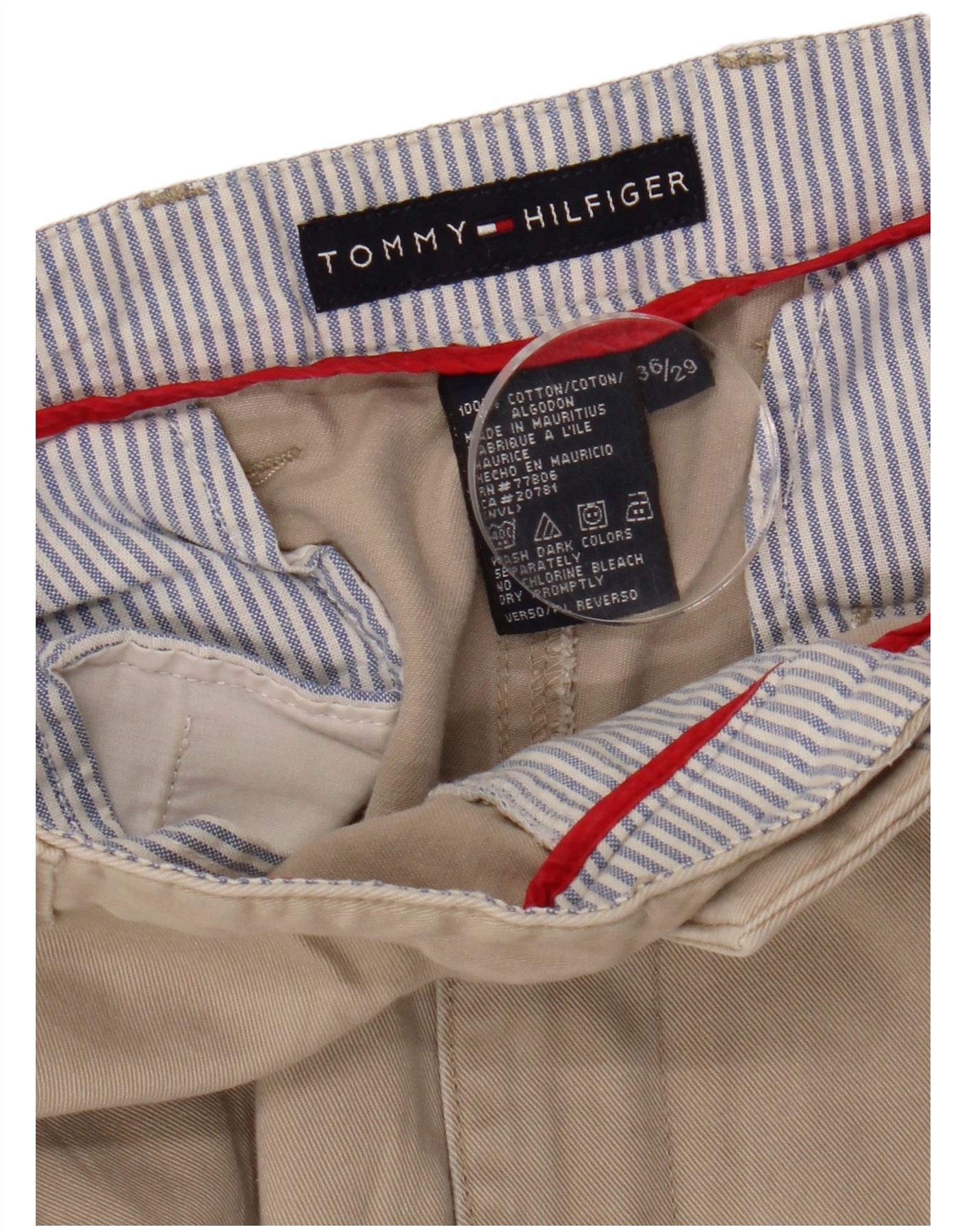 TOMMY HILFIGER Pantaloni cargo dritti da uomo W36 L29 Cotone beige