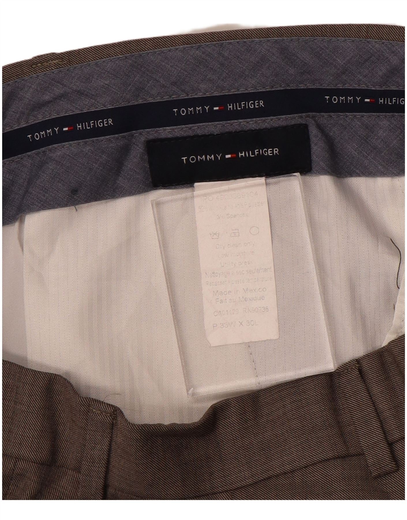 TOMMY HILFIGER Pantaloni da abito dritti da uomo W35 L30 Poliestere grigio