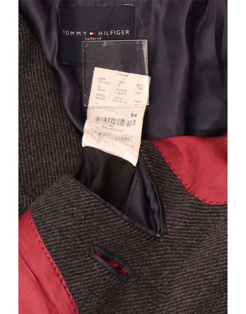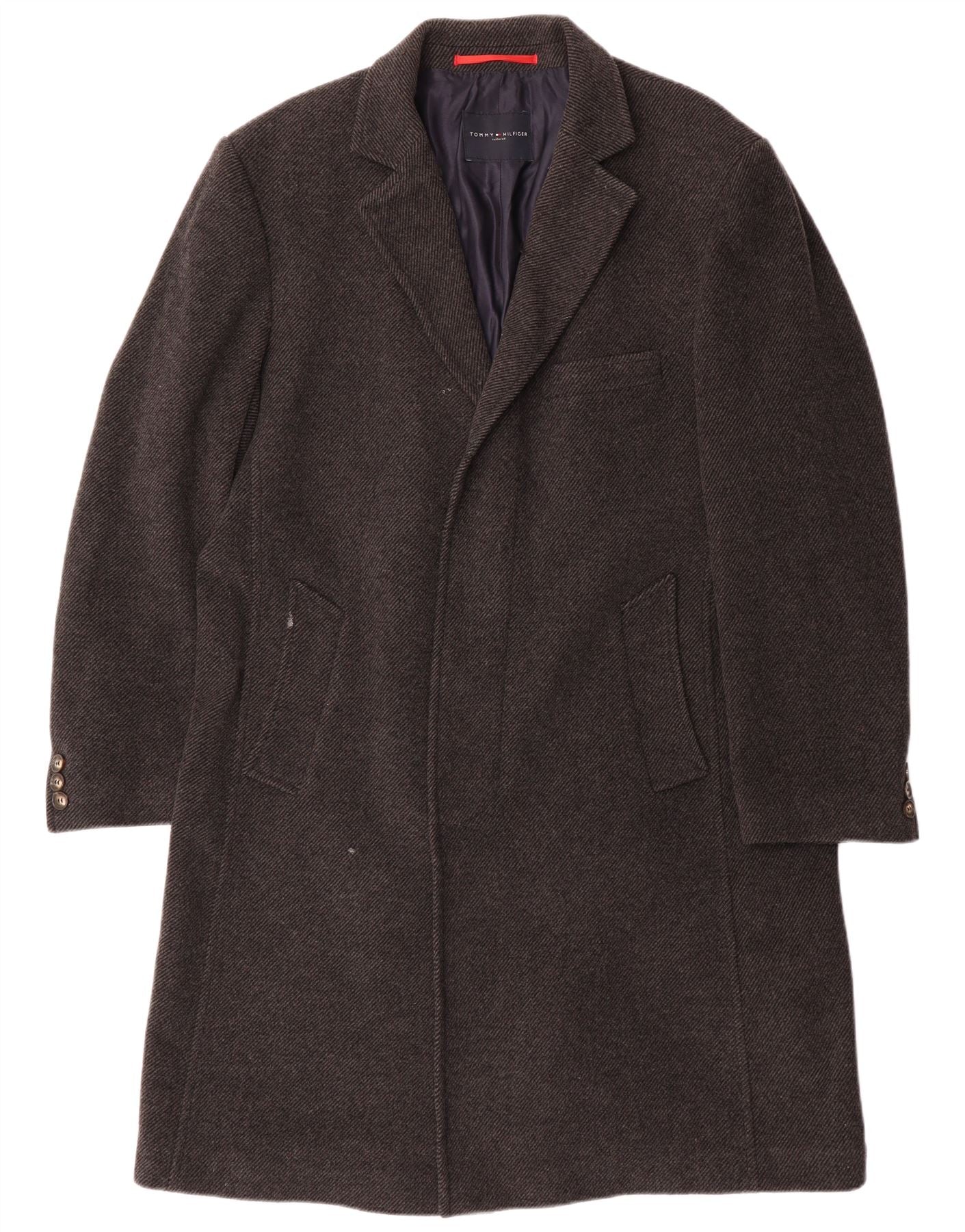 TOMMY HILFIGER Mens Tailored Overcoat UK 40 Large Grey Herringbone Wool