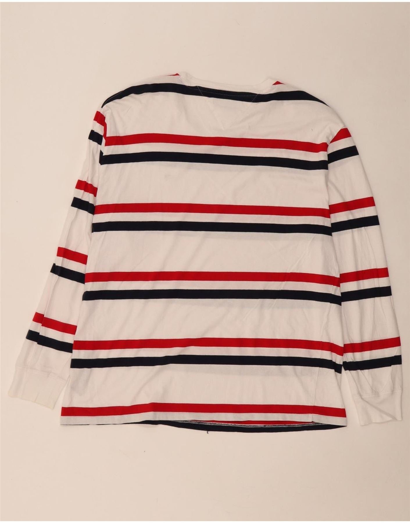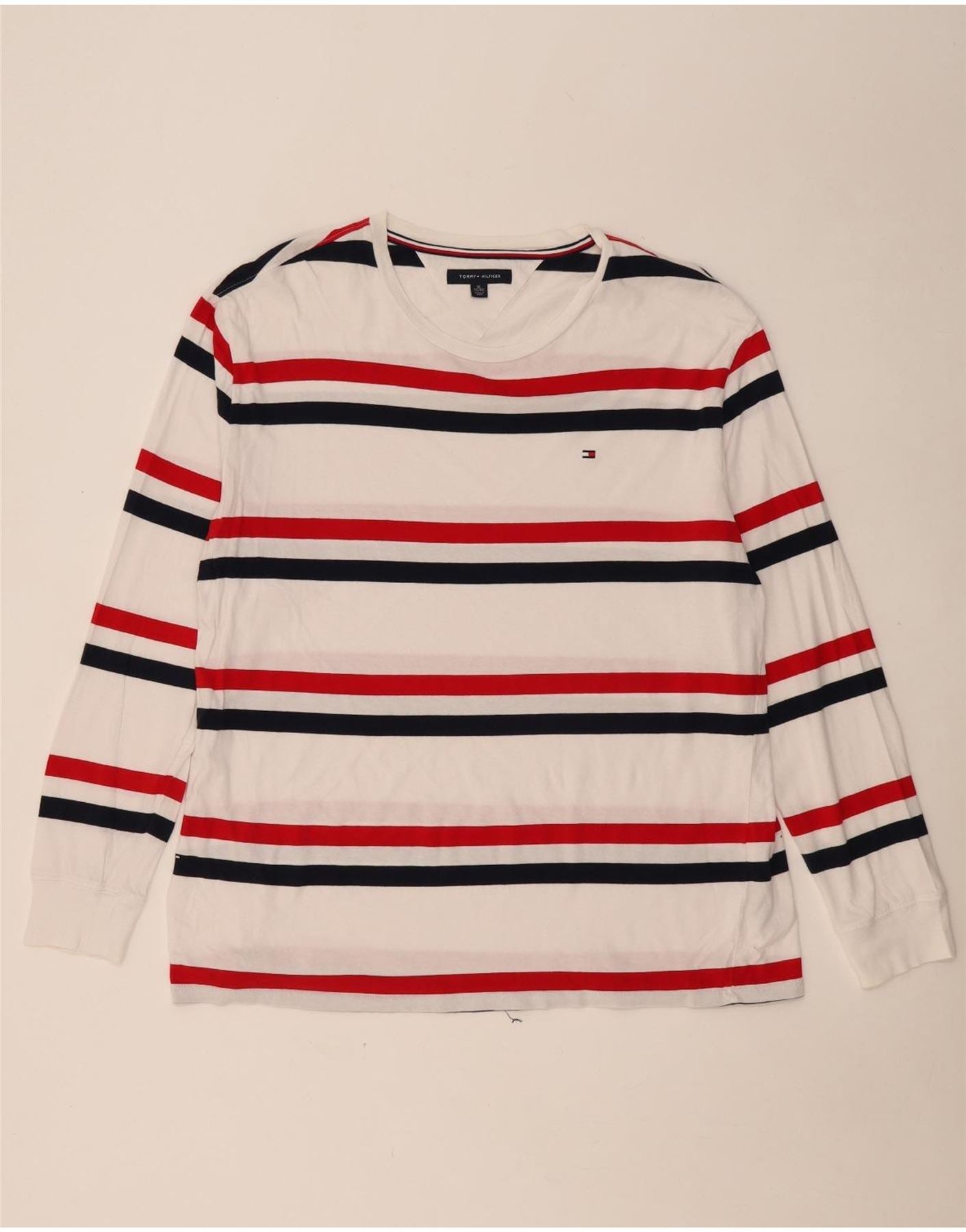 TOMMY HILFIGER Top da uomo a maniche lunghe XL in cotone a righe bianche