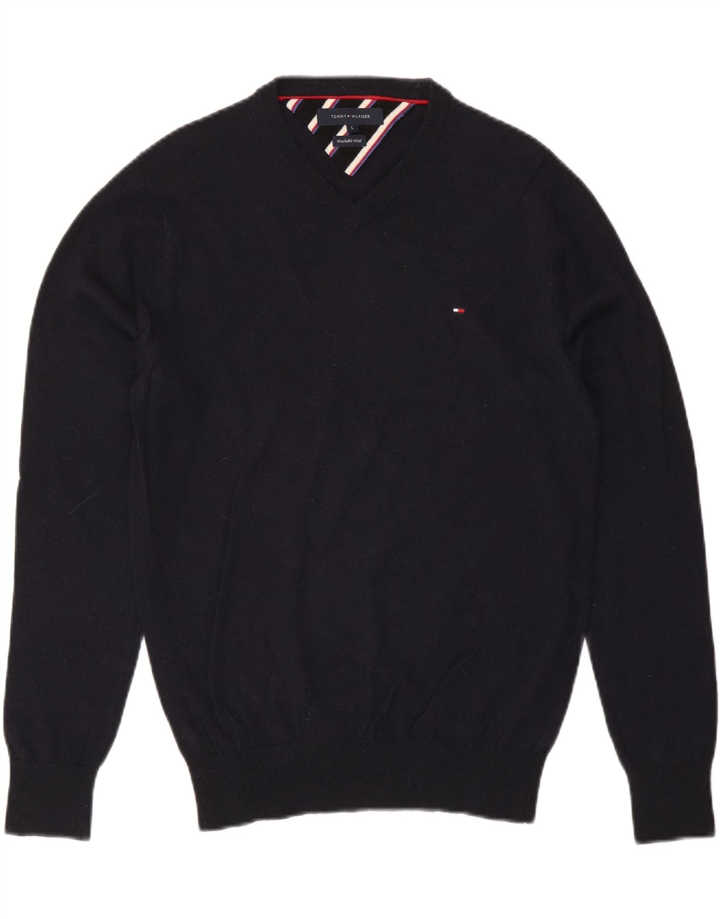 TOMMY HILFIGER Maglione da uomo con scollo a V grande lana blu navy