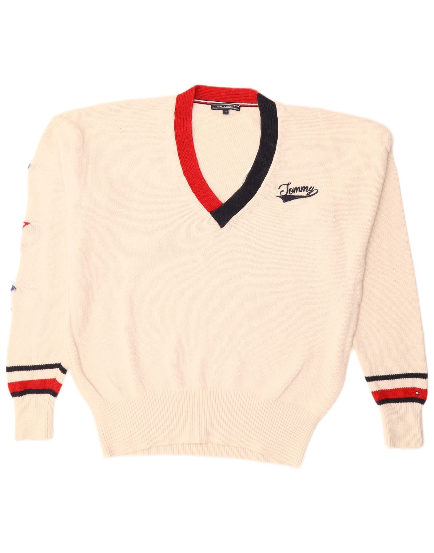 Maglione maglione con scollo a V da uomo Tommy Hilfiger cotone bianco sporco medio