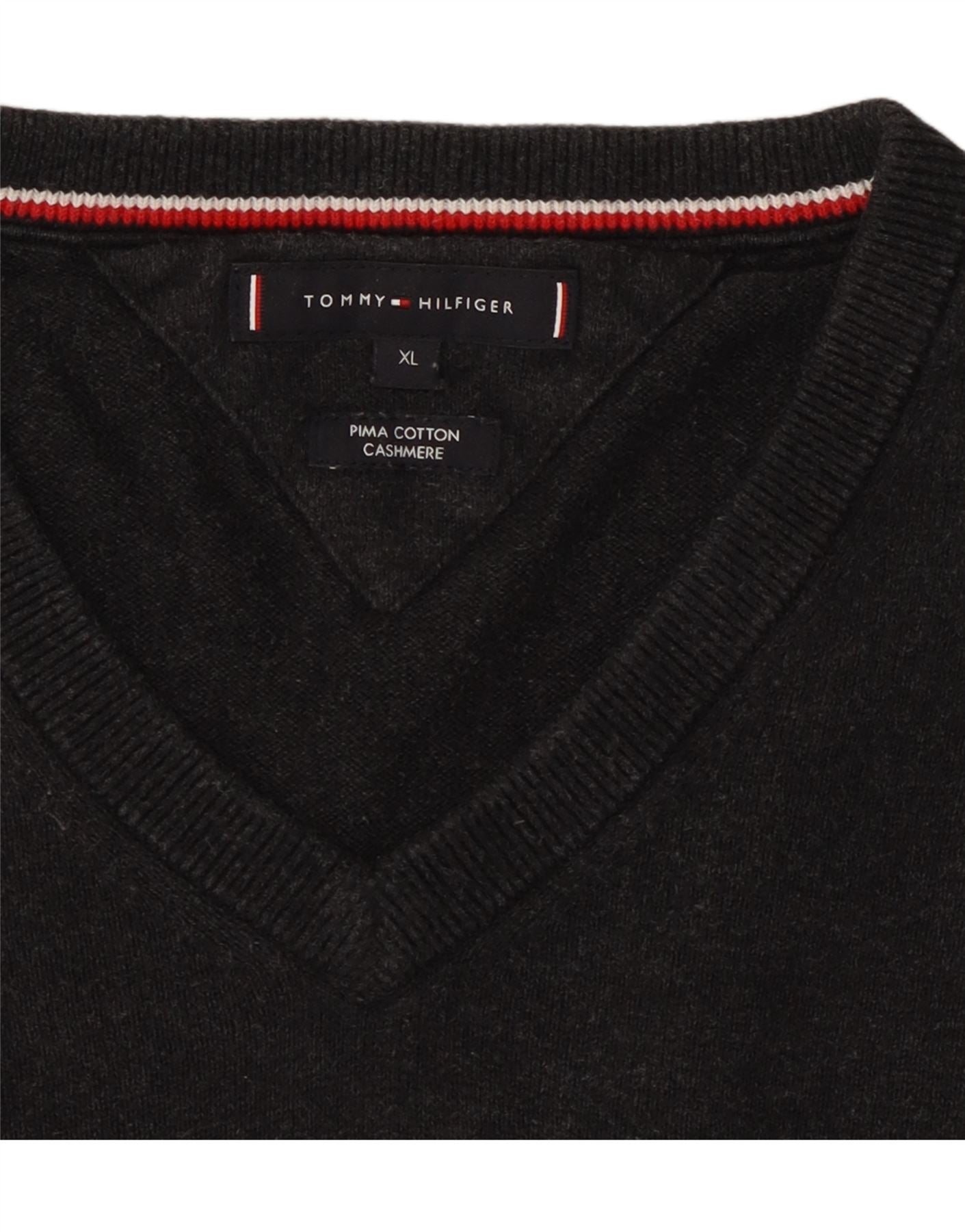 TOMMY HILFIGER Maglione da uomo con scollo a V XL in cotone grigio