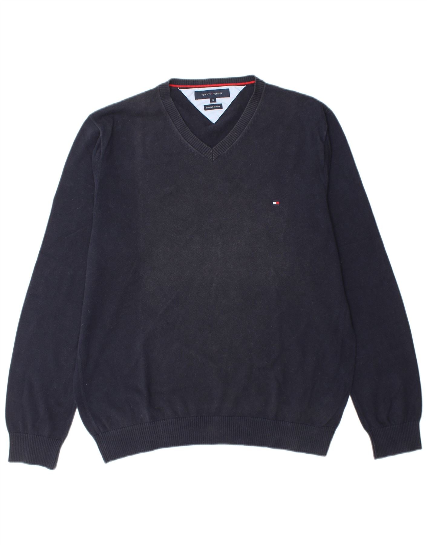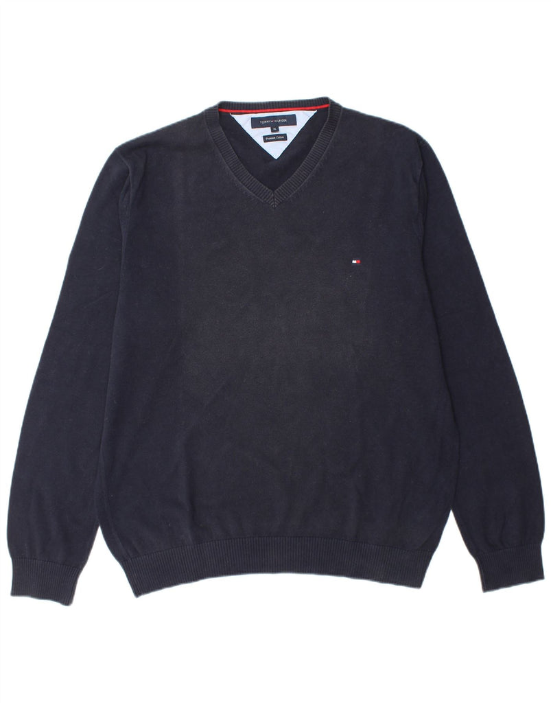 TOMMY HILFIGER Mens V-Neck Jumper Sweater XL Navy Blue Cotton
