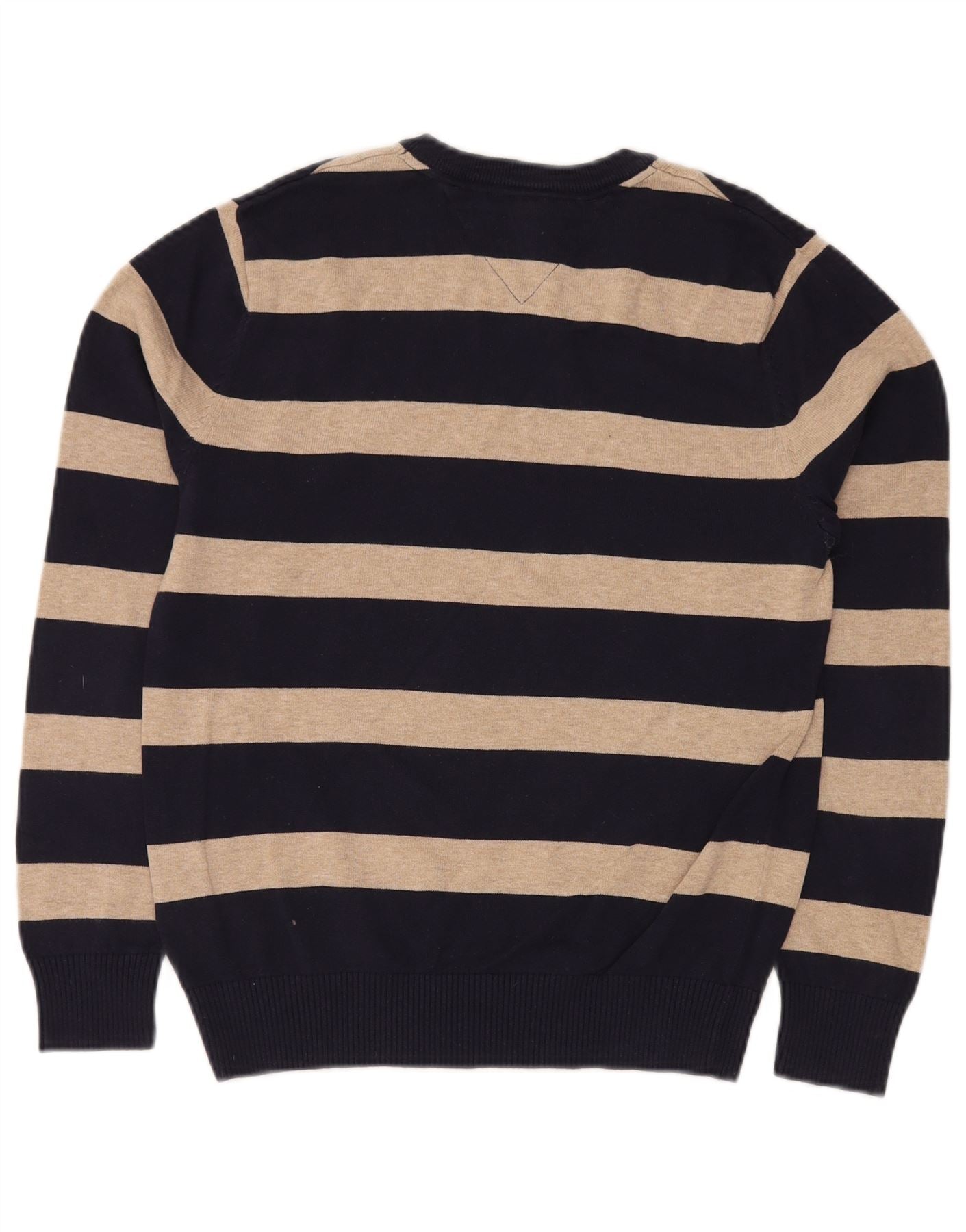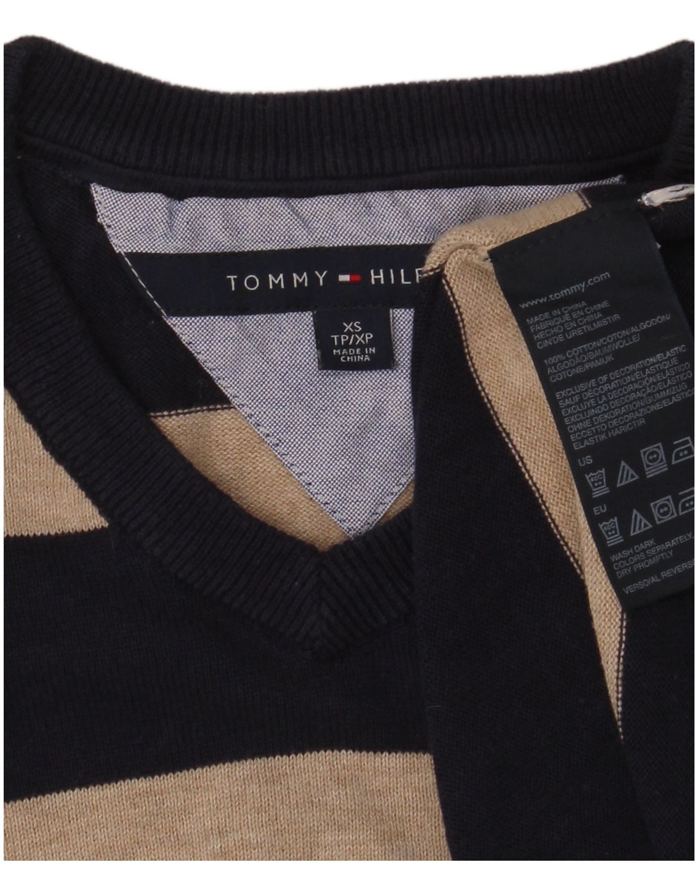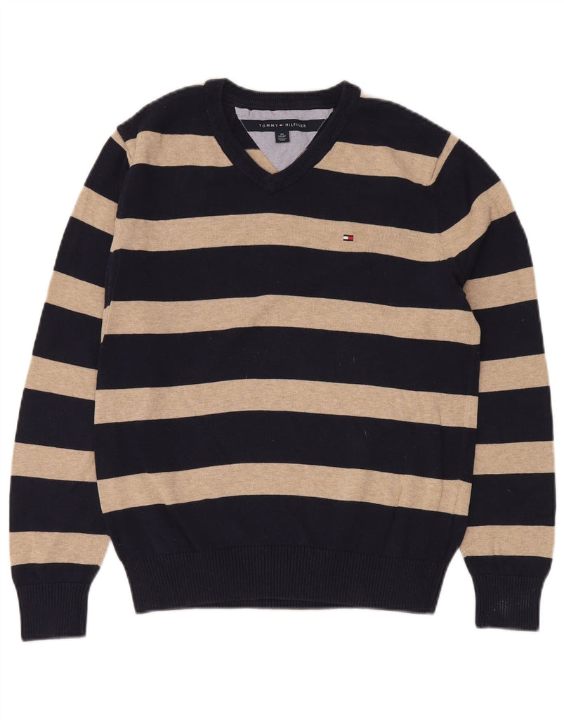 TOMMY HILFIGER Maglione da uomo con scollo a V XS in cotone a righe blu navy