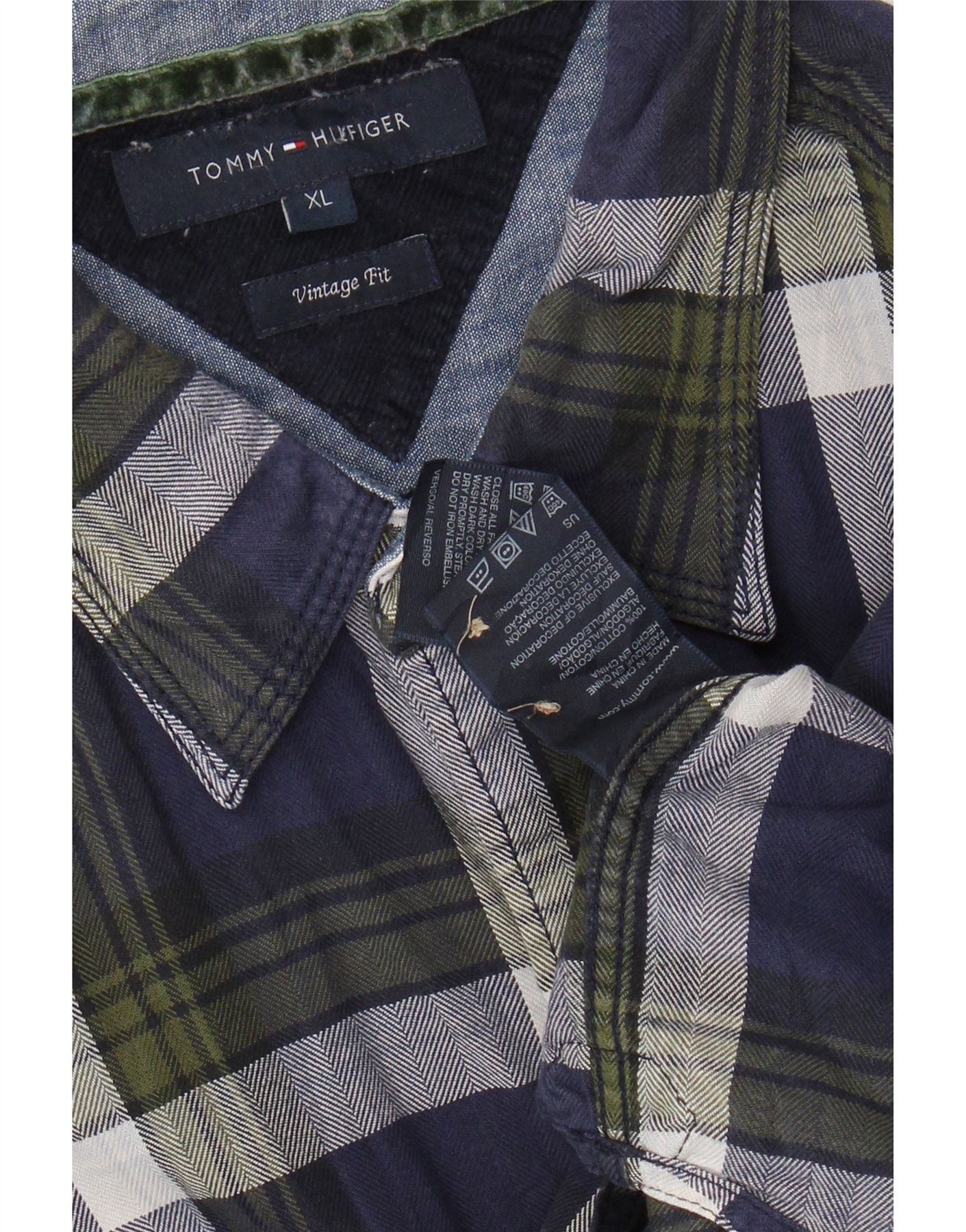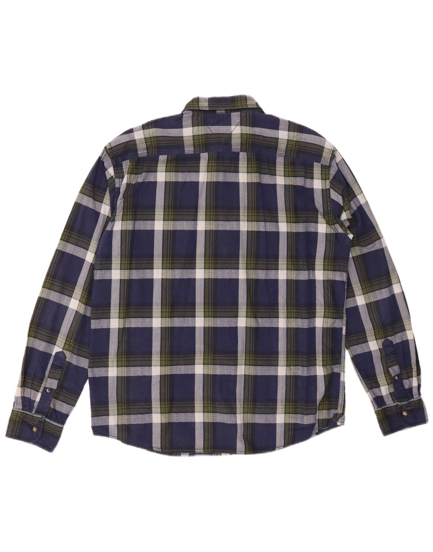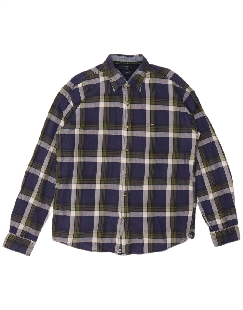TOMMY HILFIGER Camicia da uomo in flanella dal taglio vintage XL in cotone a quadri blu navy