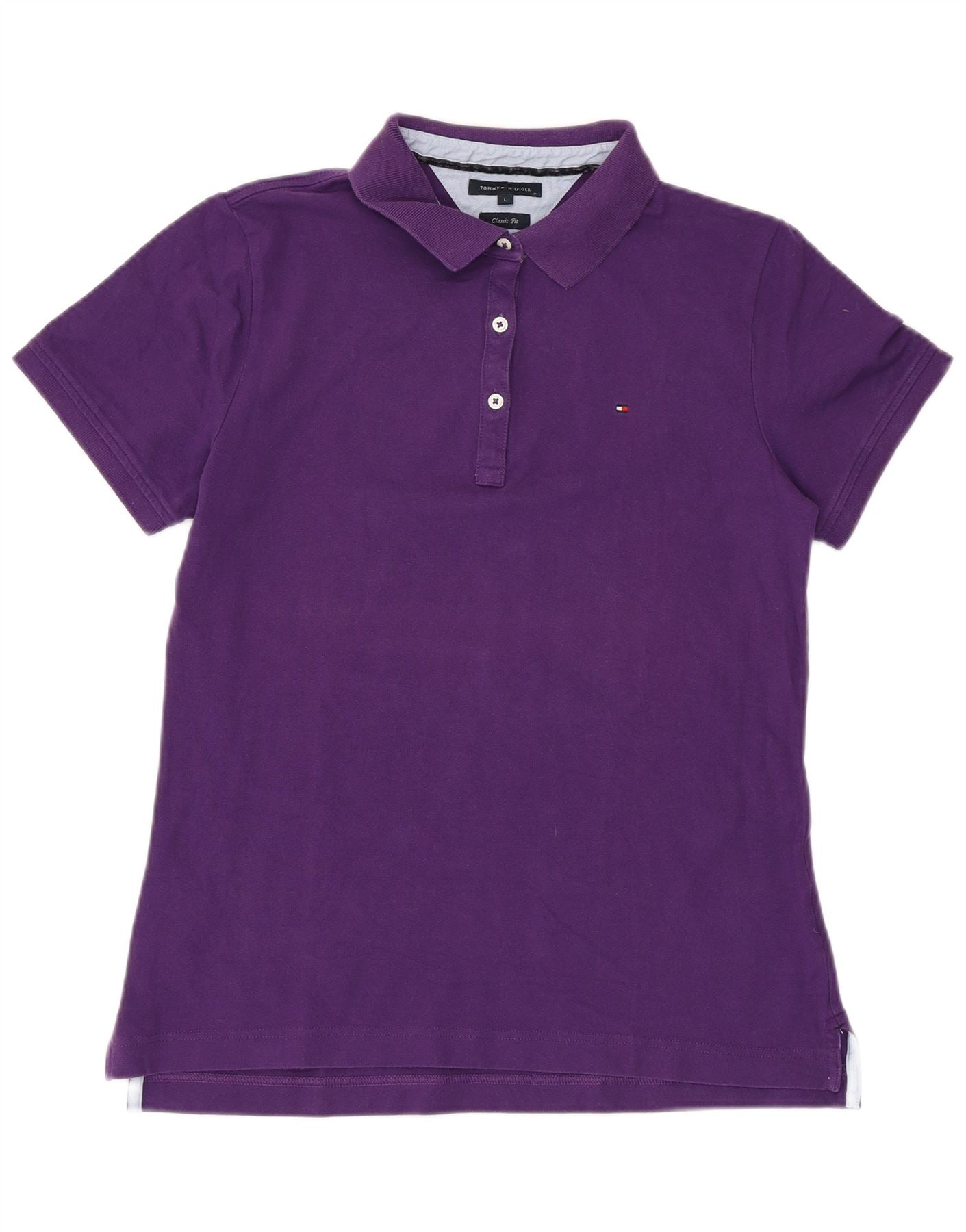 TOMMY HILFIGER Polo da donna vestibilità classica UK 14 grande cotone viola