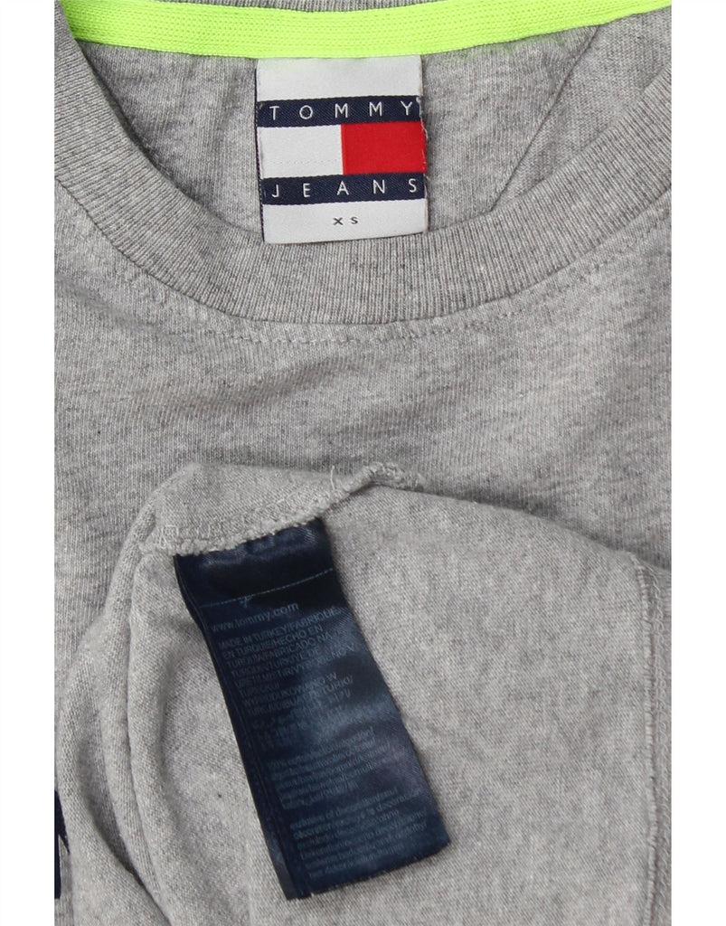 TOMMY HILFIGER Womens Crop Oversized Graphic T-Shirt Top UK 6 XS Grey