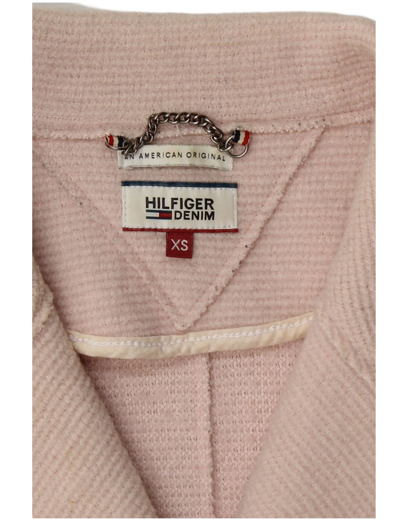 TOMMY HILFIGER Womens Double Breasted Coat UK 6 XS Pink Polyester