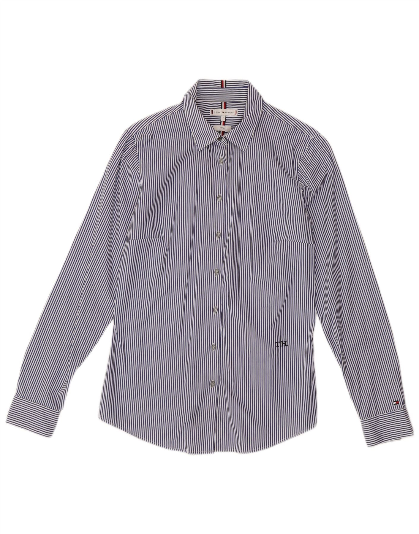 TOMMY HILFIGER Camicia aderente da donna US 6 a righe blu medio