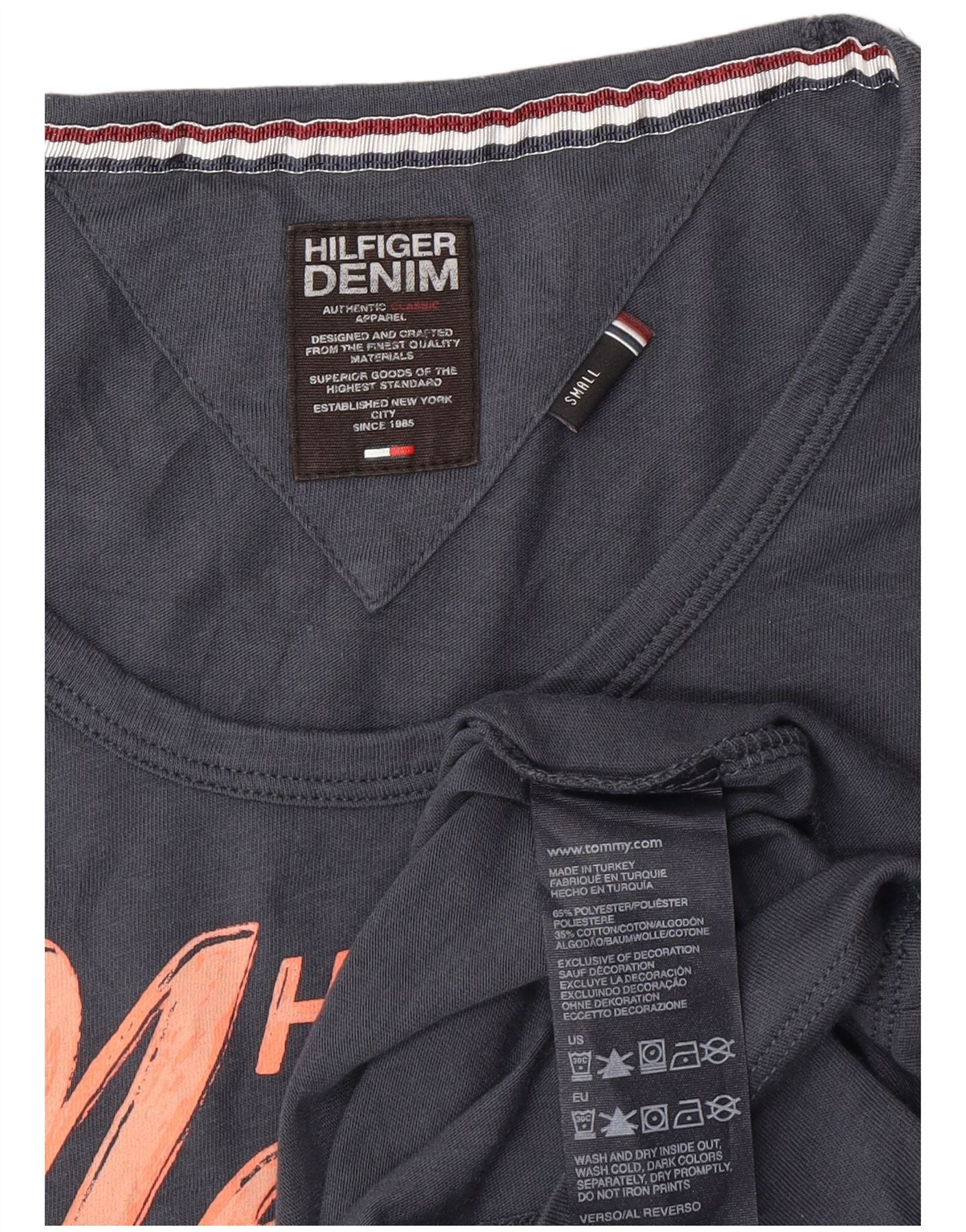 TOMMY HILFIGER T-shirt grafica da donna Top UK 10 Small Poliestere blu navy