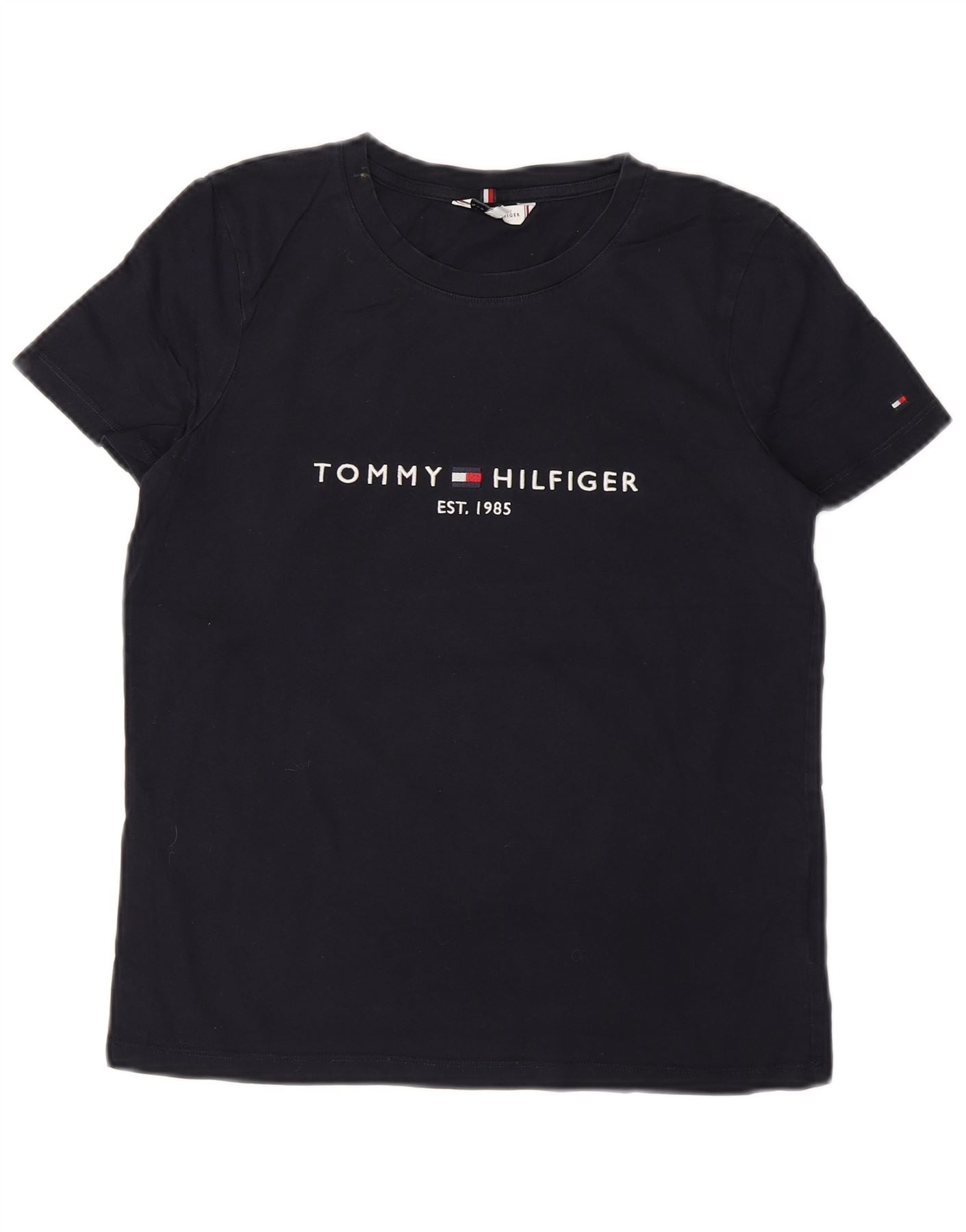 TOMMY HILFIGER T-shirt grafica da donna Top UK 12 cotone blu navy medio