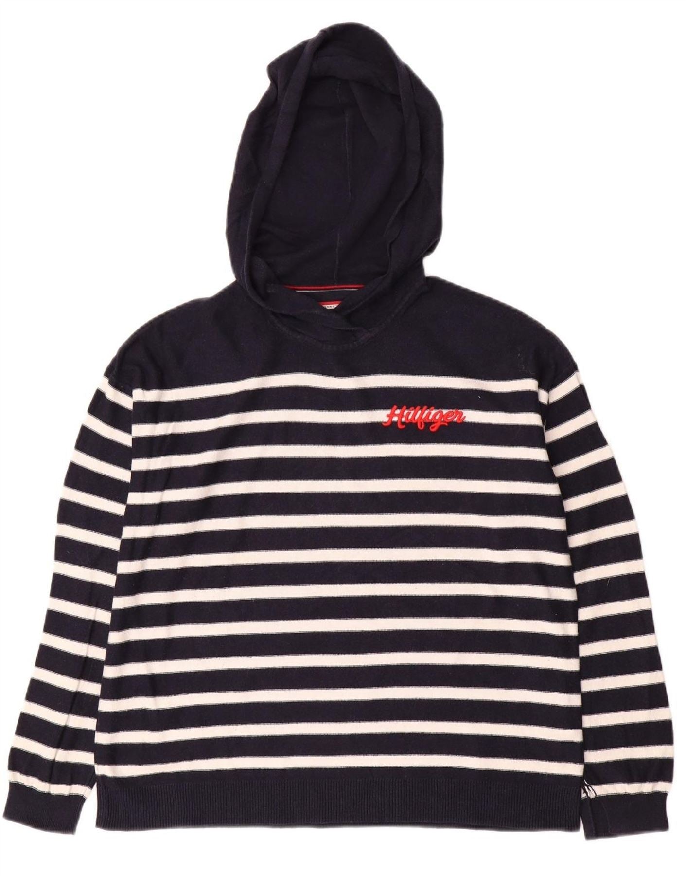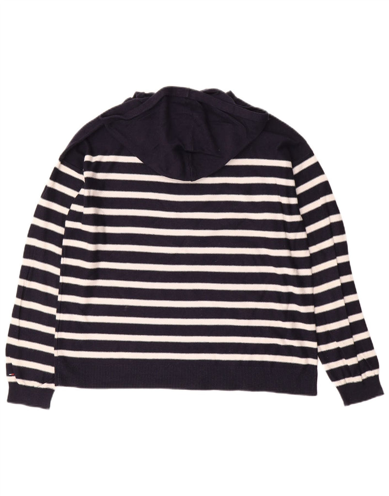 TOMMY HILFIGER Maglione con cappuccio da donna UK 14 Medio a righe blu navy