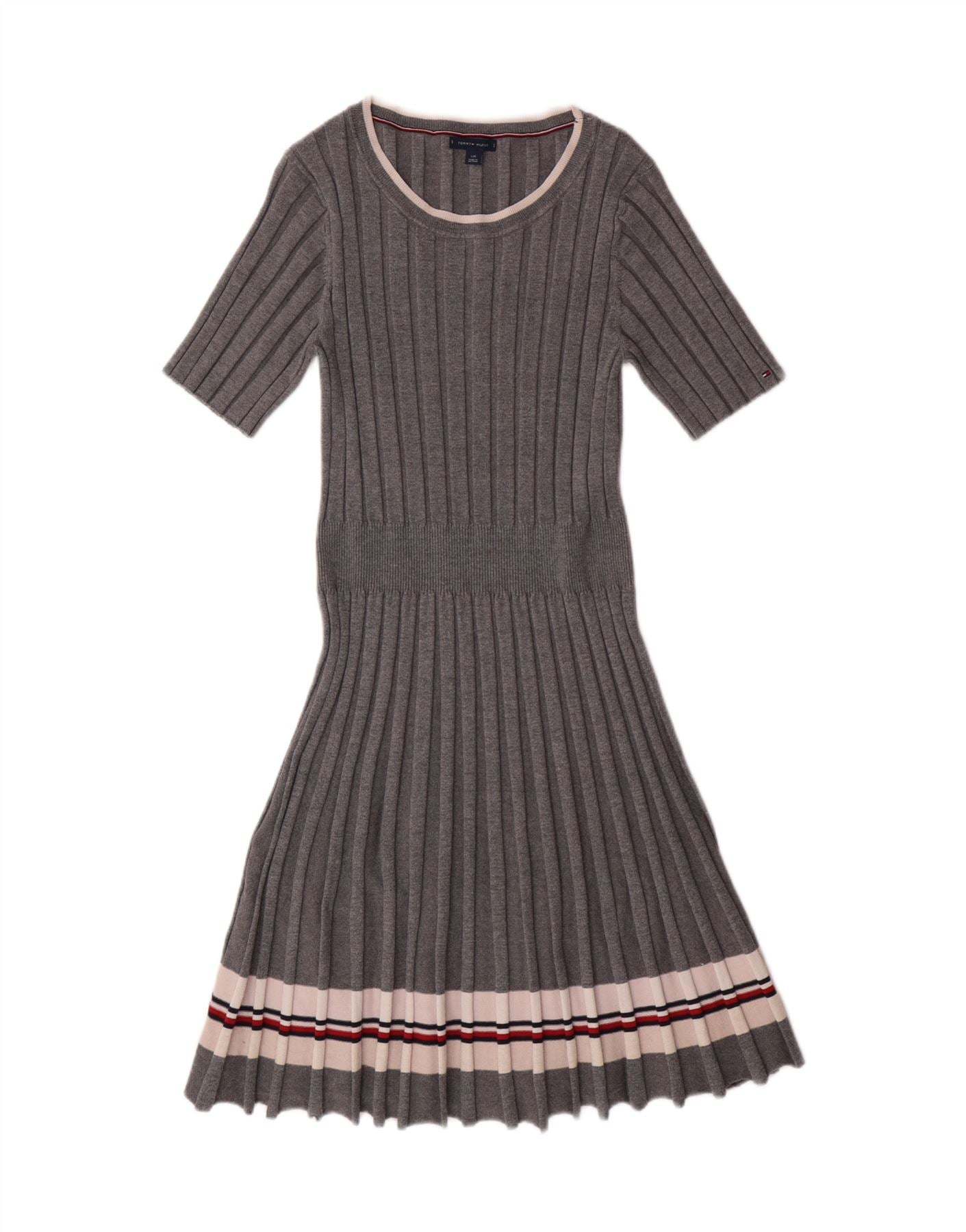 TOMMY HILFIGER Abito maglione da donna UK 14 Viscosa a righe grigie grandi