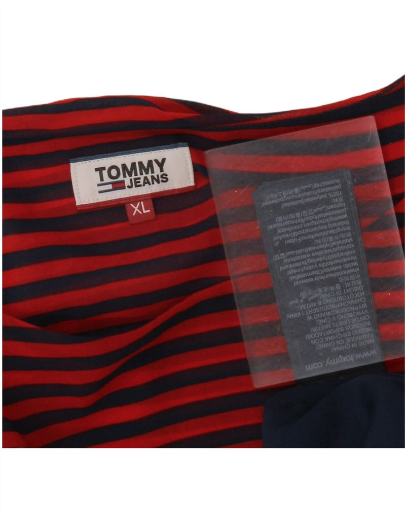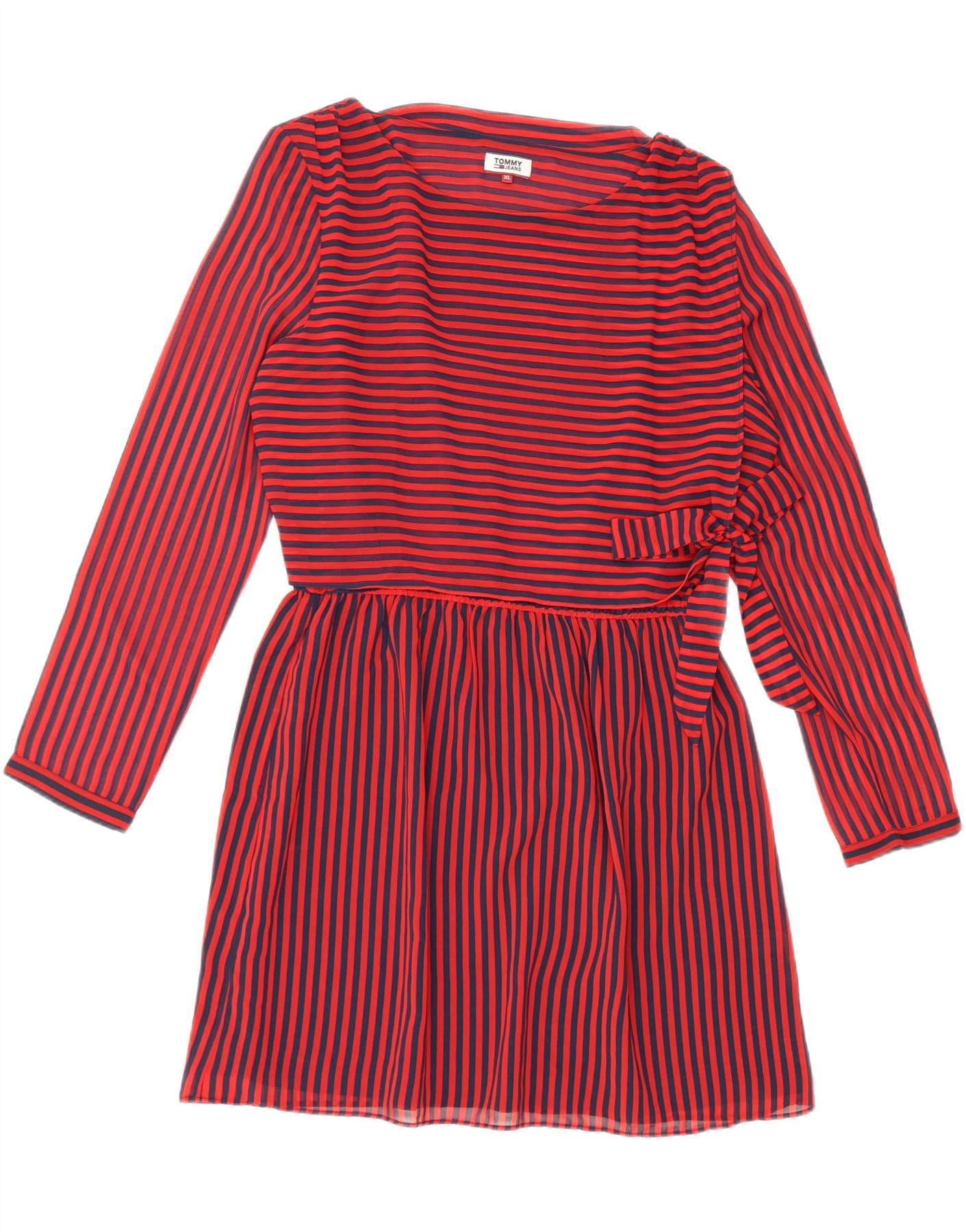 TOMMY HILFIGER Abito da donna a maniche lunghe a trapezio UK 18 XL a righe rosse