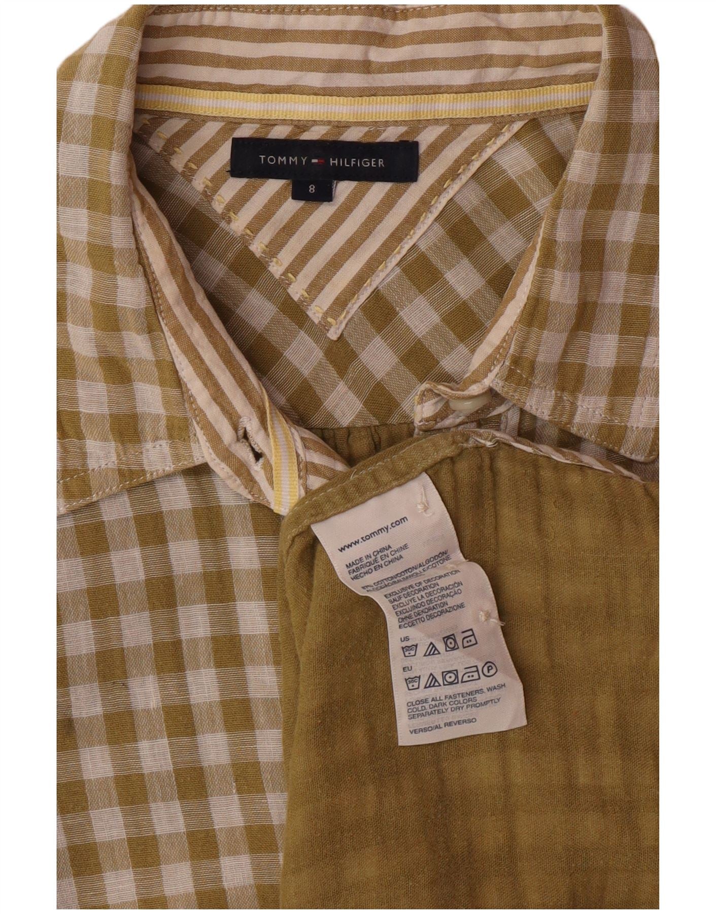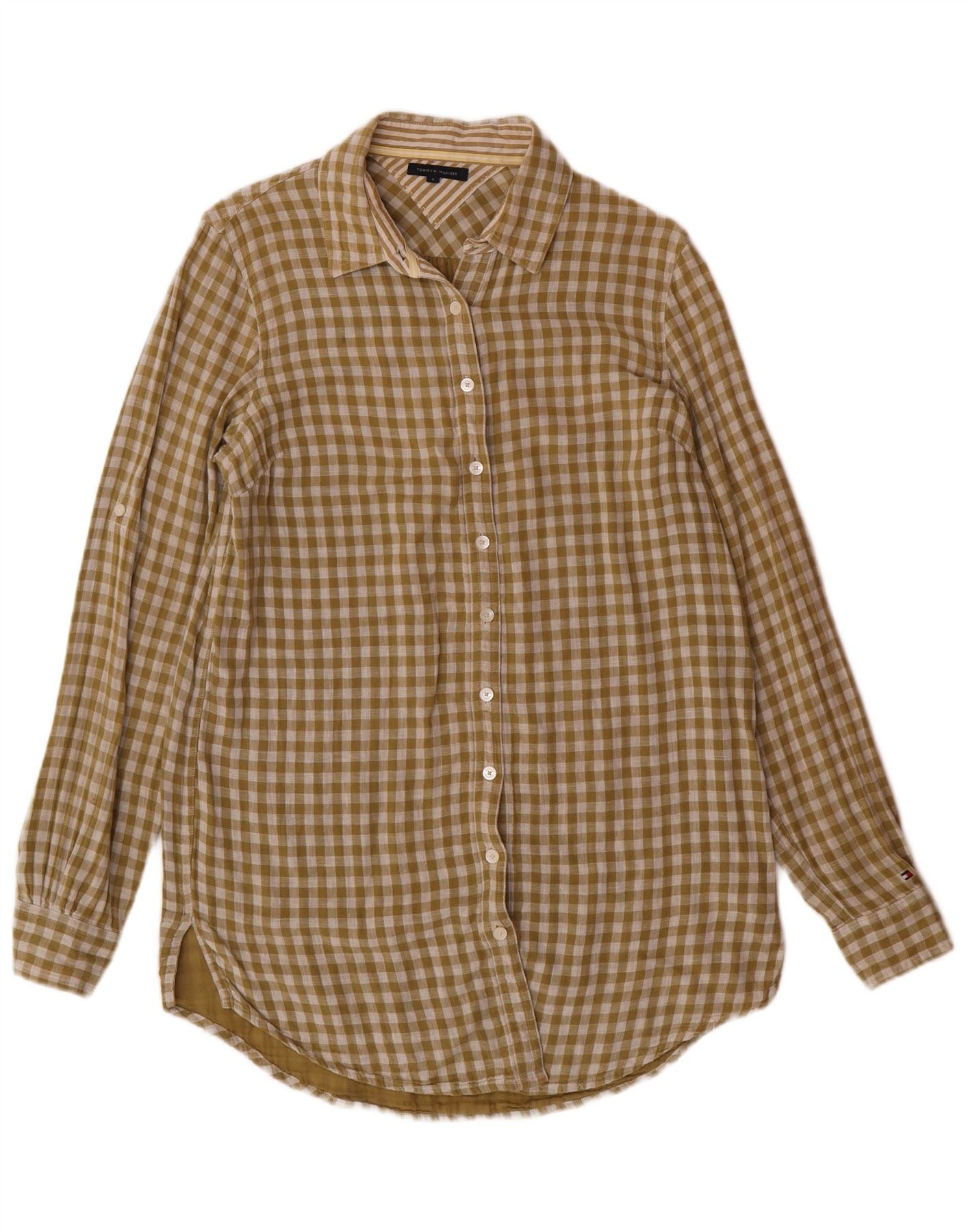 TOMMY HILFIGER Camicia lunga da donna US 8 cotone a quadretti verde medio
