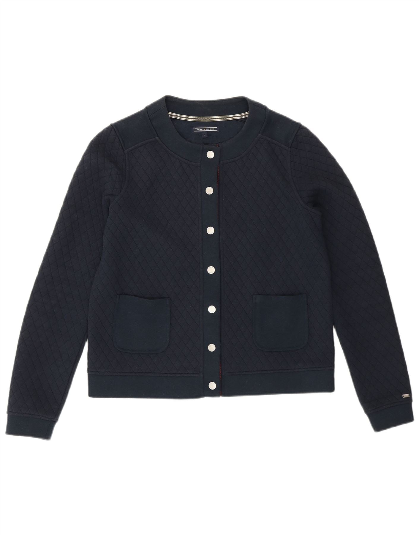 TOMMY HILFIGER Top cardigan corto da donna vestibilità ampia UK 10 piccolo blu navy