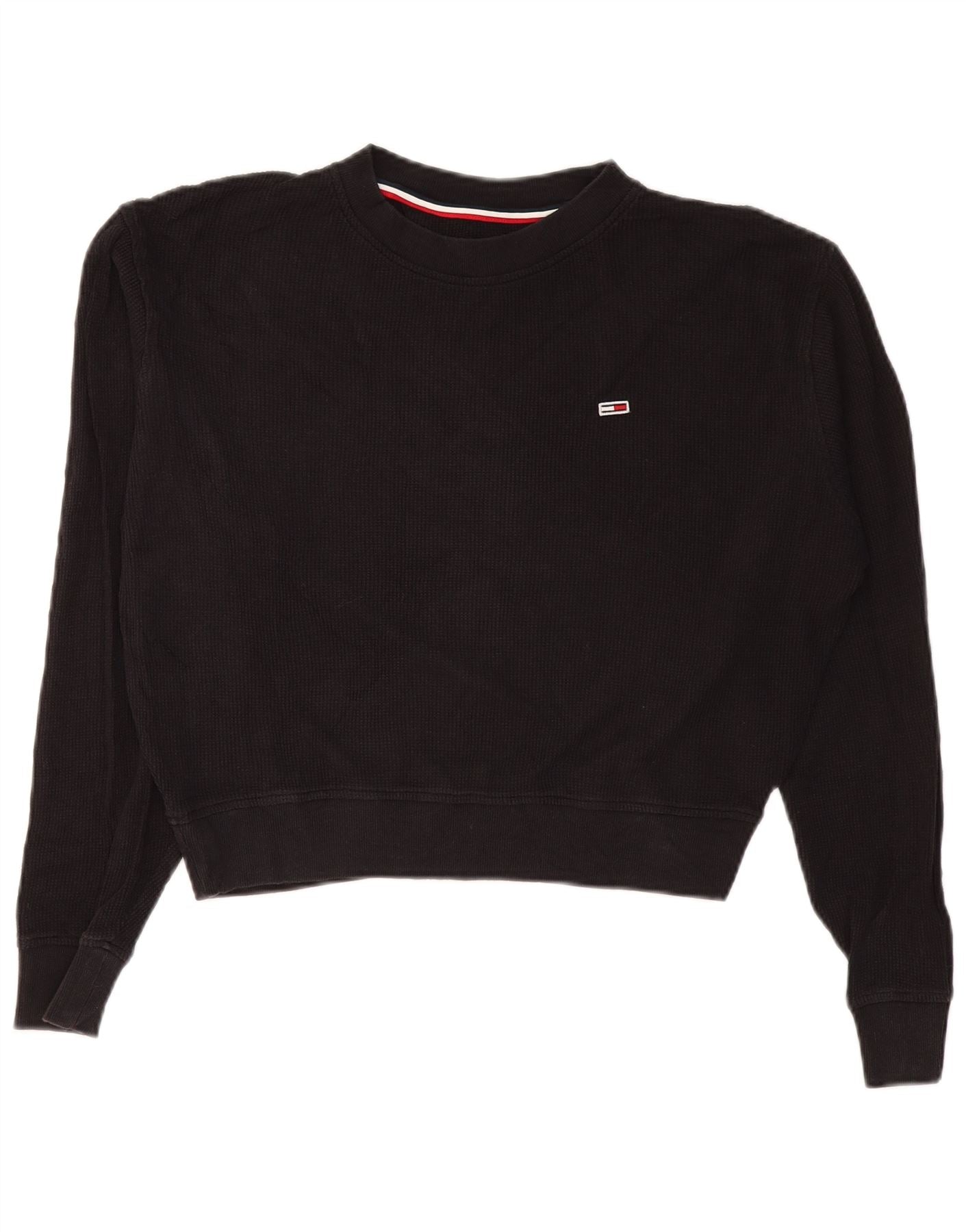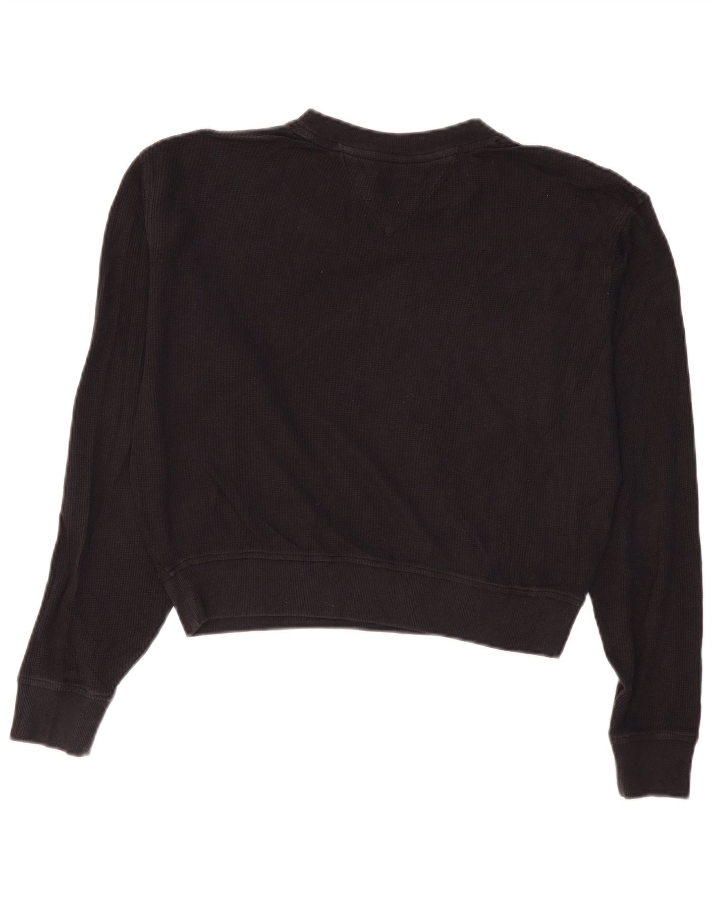 TOMMY HILFIGER Top corto oversize da donna manica lunga UK 10 piccolo nero