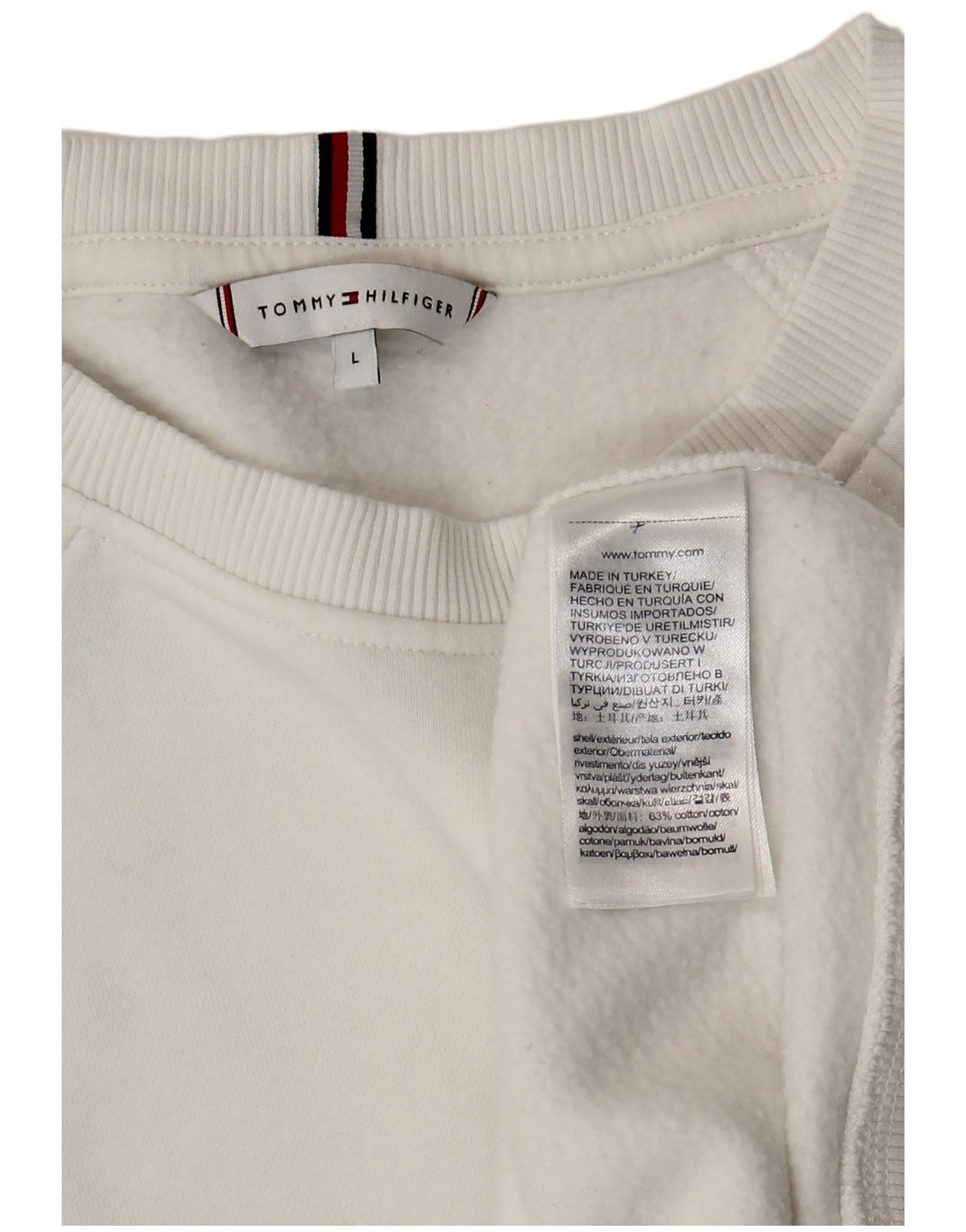 TOMMY HILFIGER Felpa oversize da donna Maglione UK 16 Grande cotone bianco