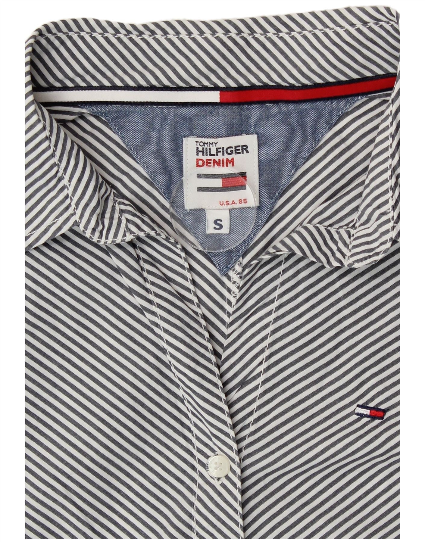 Camicia da donna Tommy Hilfiger UK 10 Small Cotone gessato blu navy