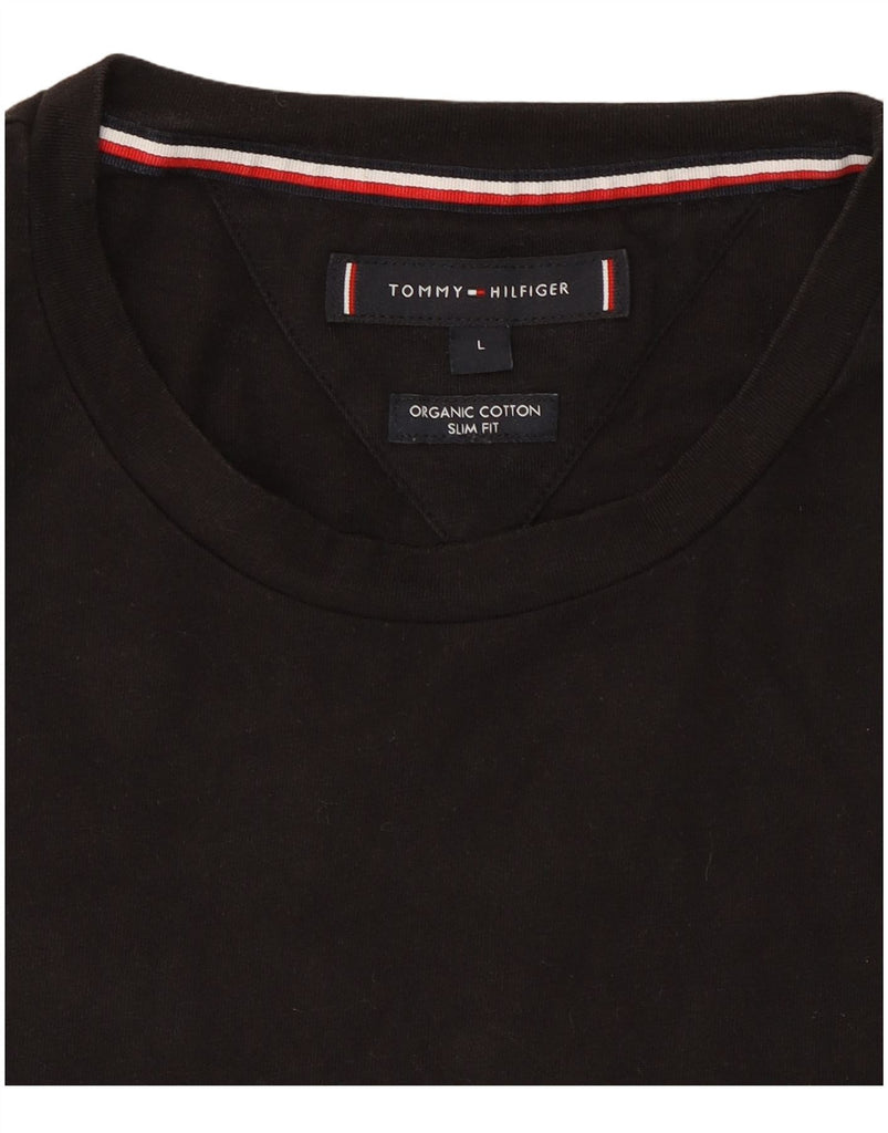 TOMMY HILFIGER Womens Slim Fit Graphic T-Shirt Top UK 14 Large Black