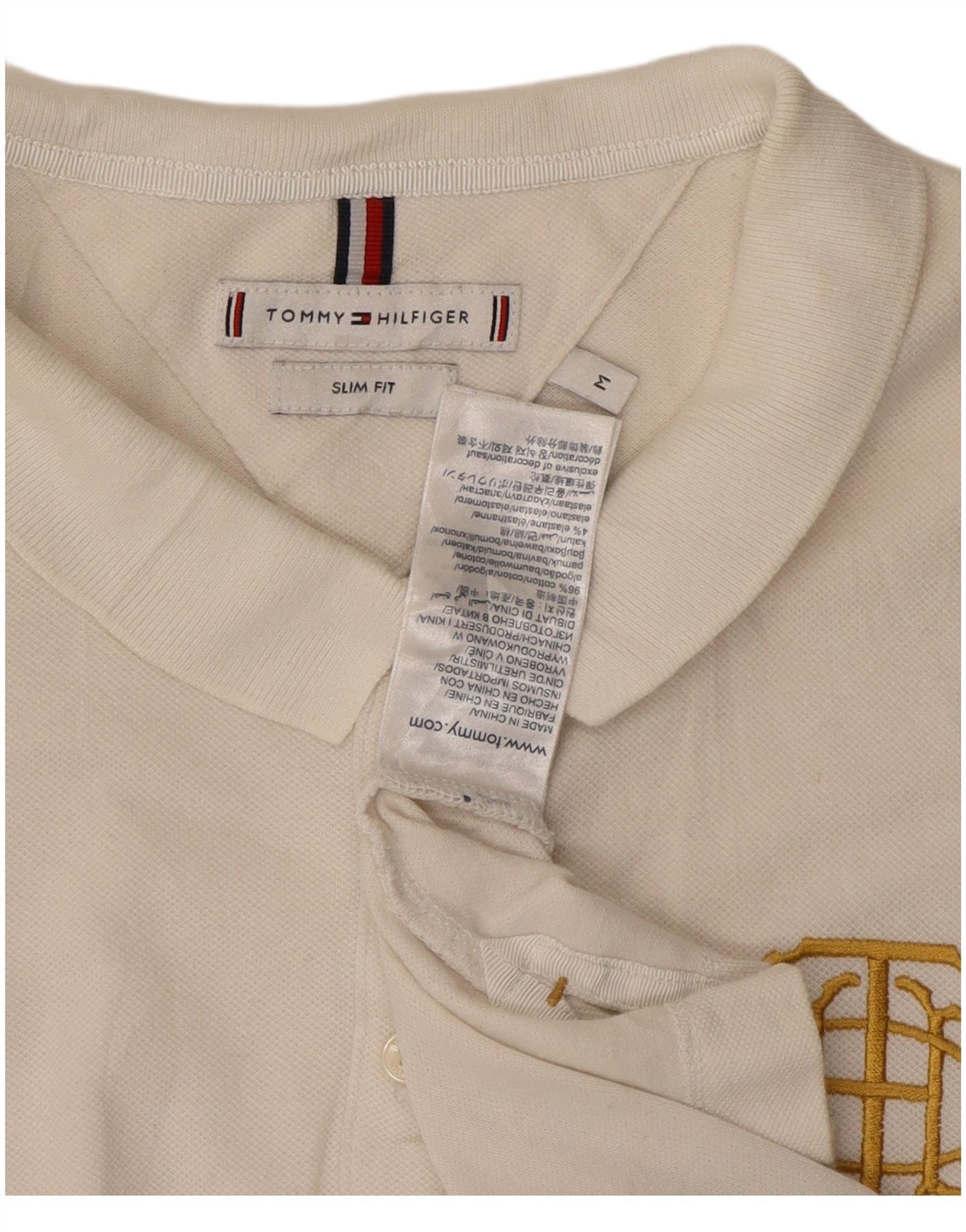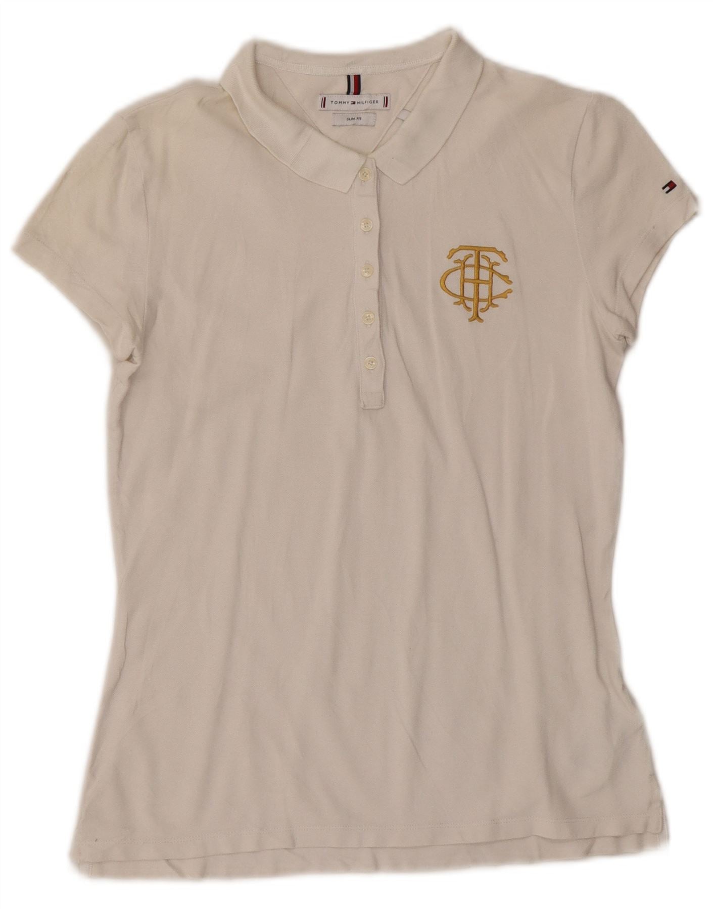 Polo da donna slim fit Tommy Hilfiger UK 12 cotone bianco medio