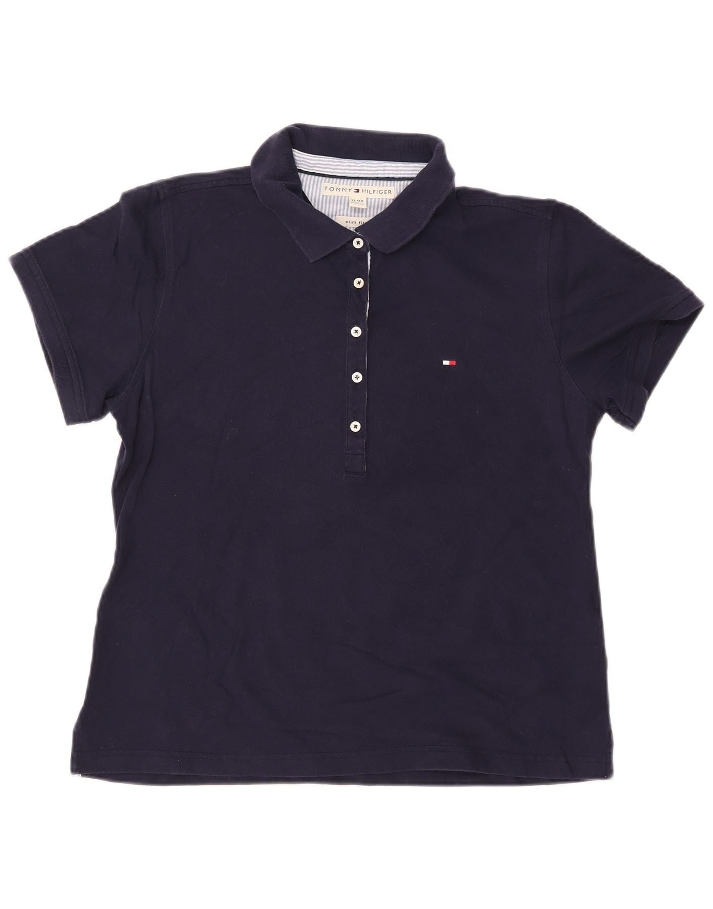 TOMMY HILFIGER Polo da donna slim fit UK 18 XL cotone blu navy