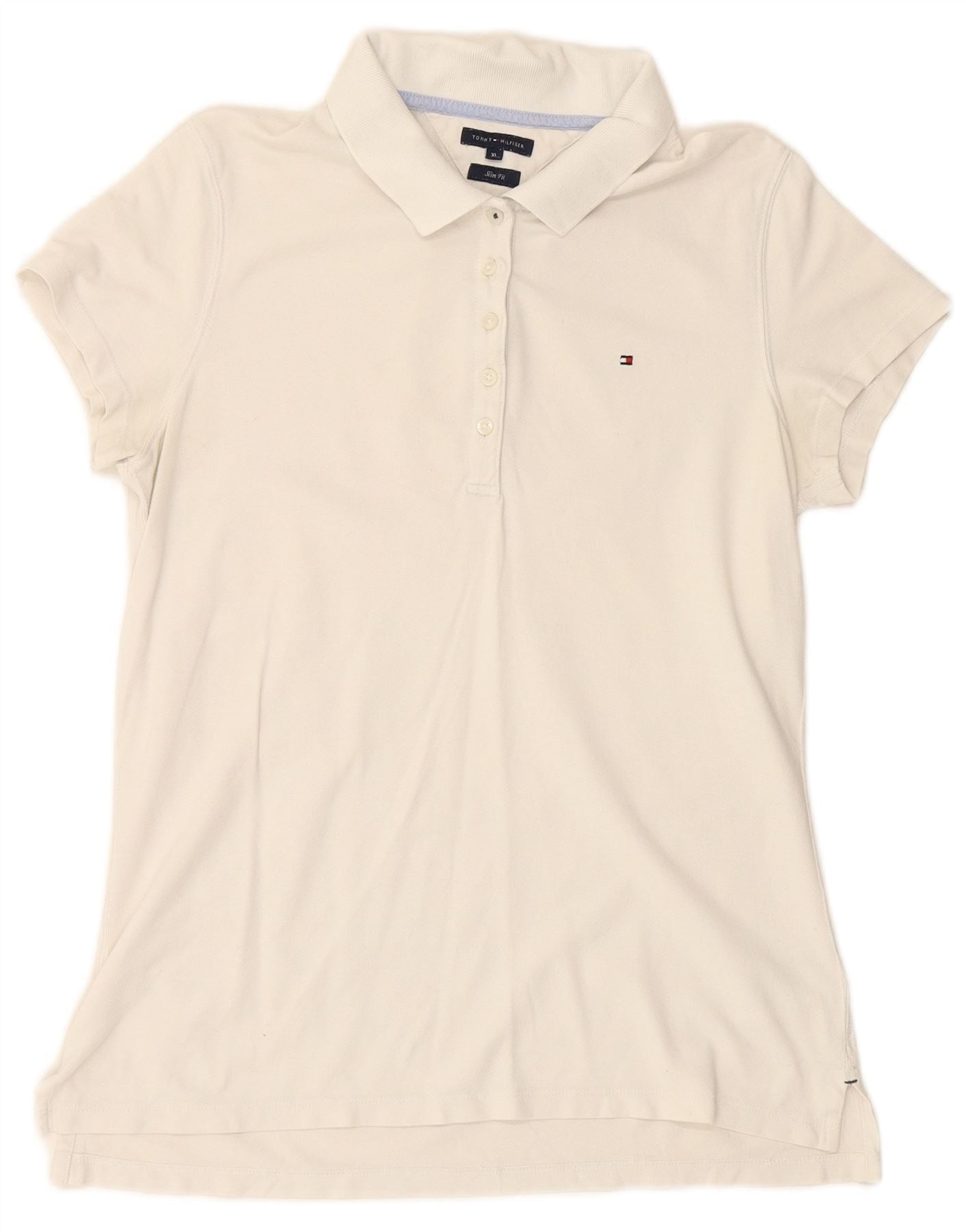 TOMMY HILFIGER Polo slim da donna UK 18 XL Cotone bianco