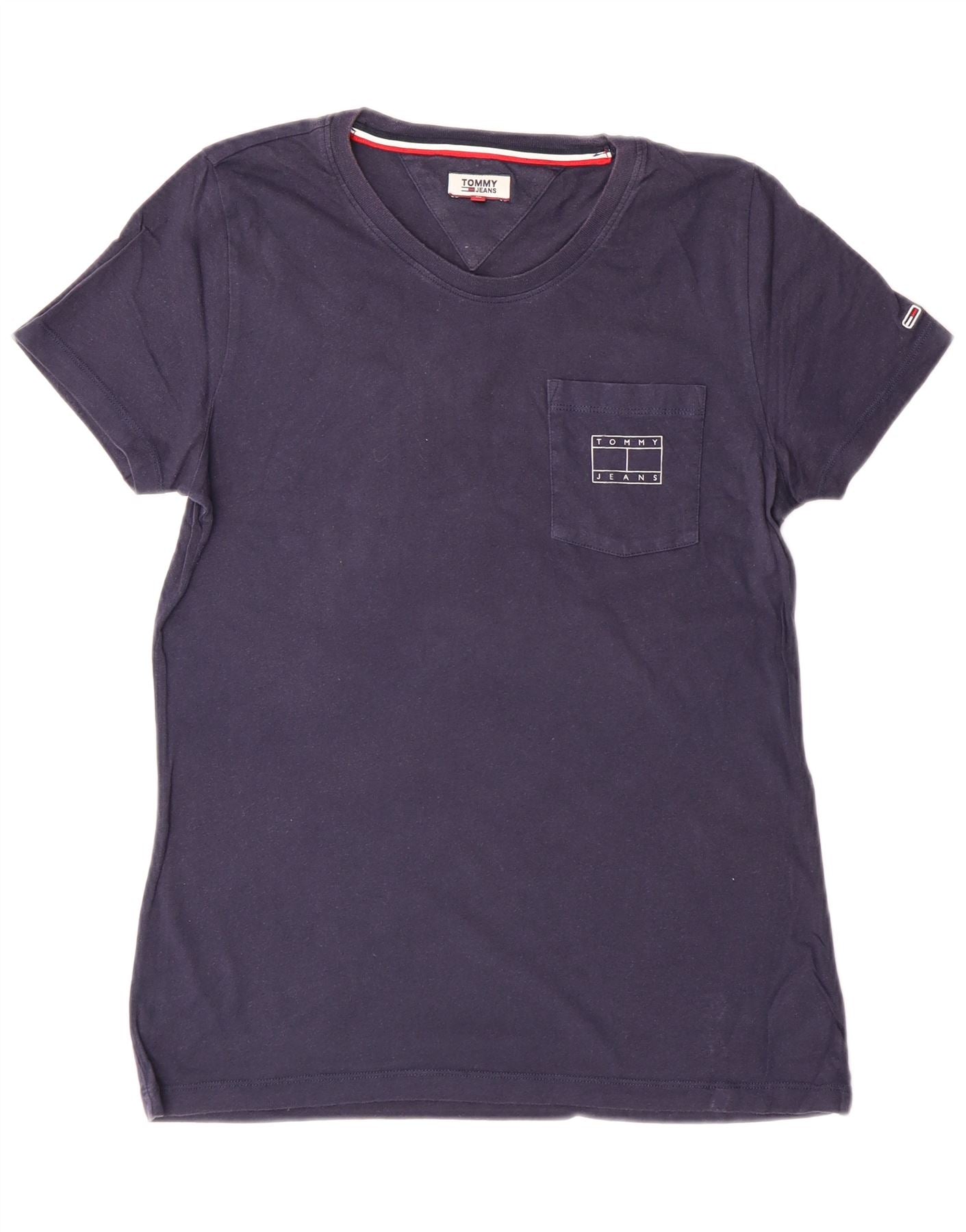 - Descrizione dell'IA: Questa maglietta grafica da donna Tommy Hilfiger è realizzata in morbido jersey di cotone al 100% blu navy. Presenta un classico scollo a V e comode maniche corte. La vestibilità regolare garantisce una silhouette rilassata. Una discreta tasca sul petto con logo ricamato aggiunge un tocco distintivo. Questo stile pullover offre un'usura semplice per il comfort quotidiano.