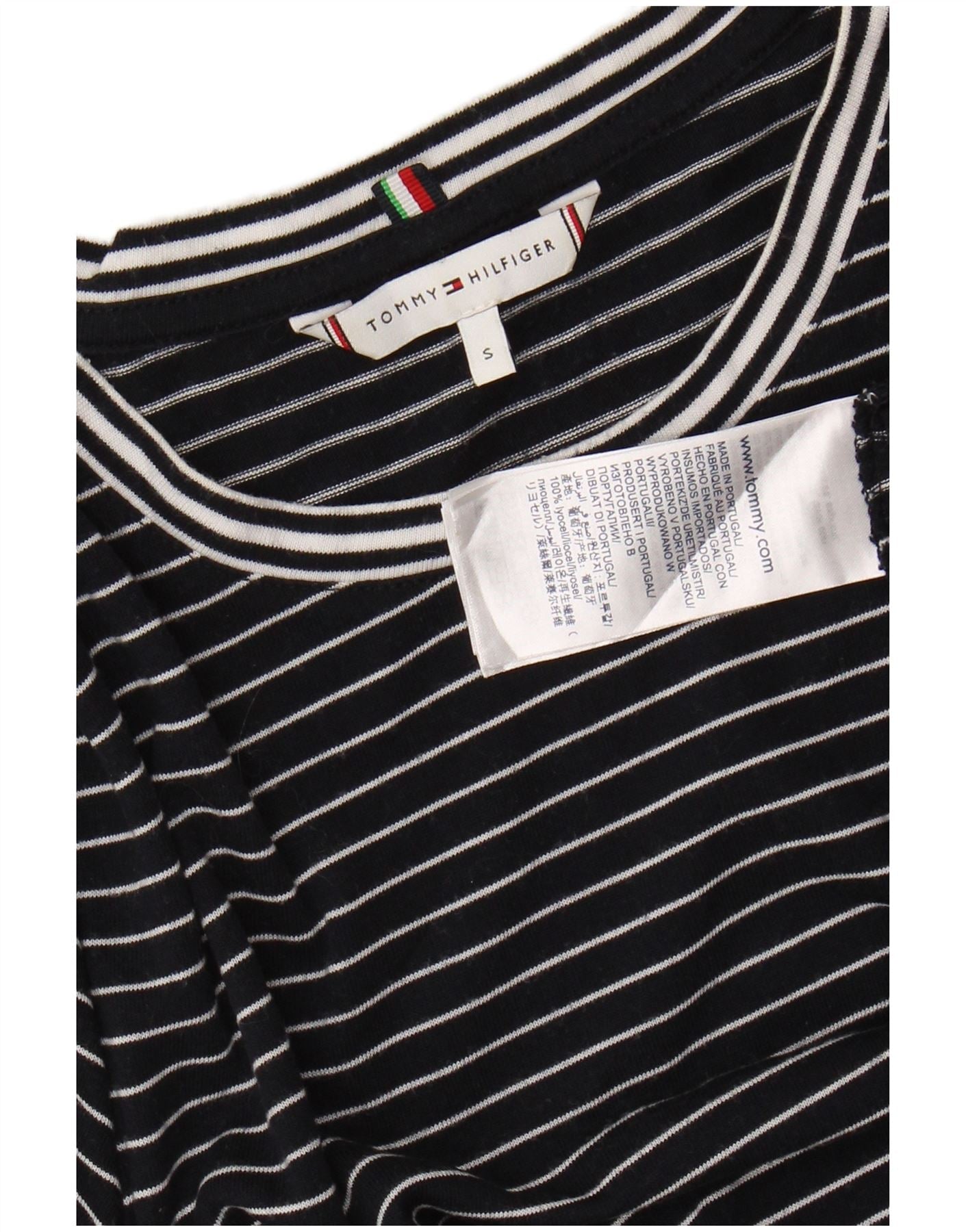 TOMMY HILFIGER T-shirt da donna Top UK 10 Small Lyocell a righe blu navy
