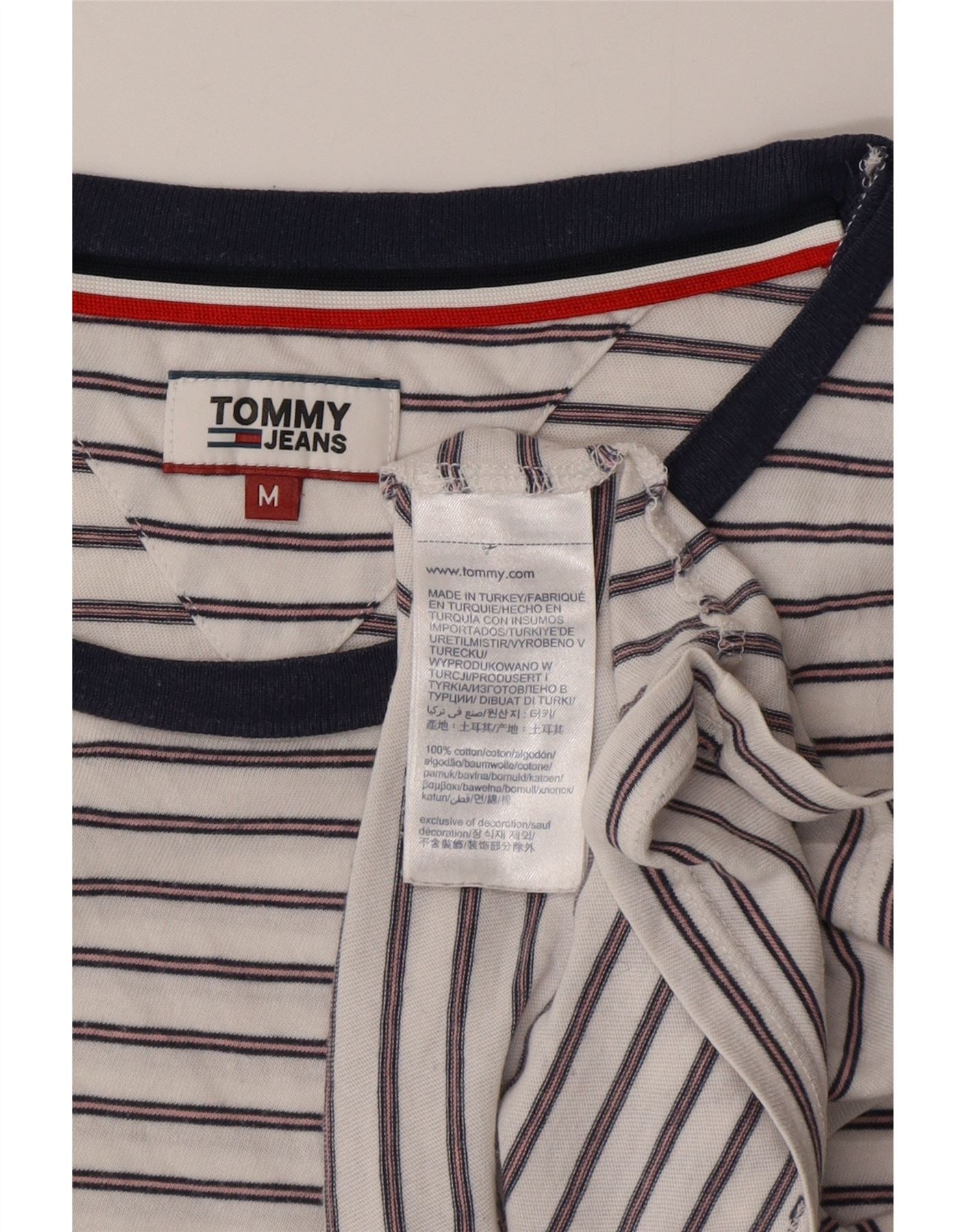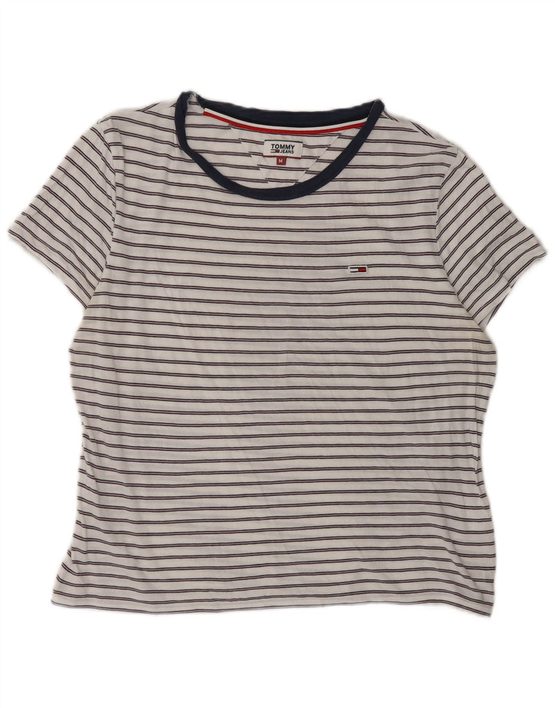 TOMMY HILFIGER Womens T-Shirt Top UK 14 Medium White Striped Cotton