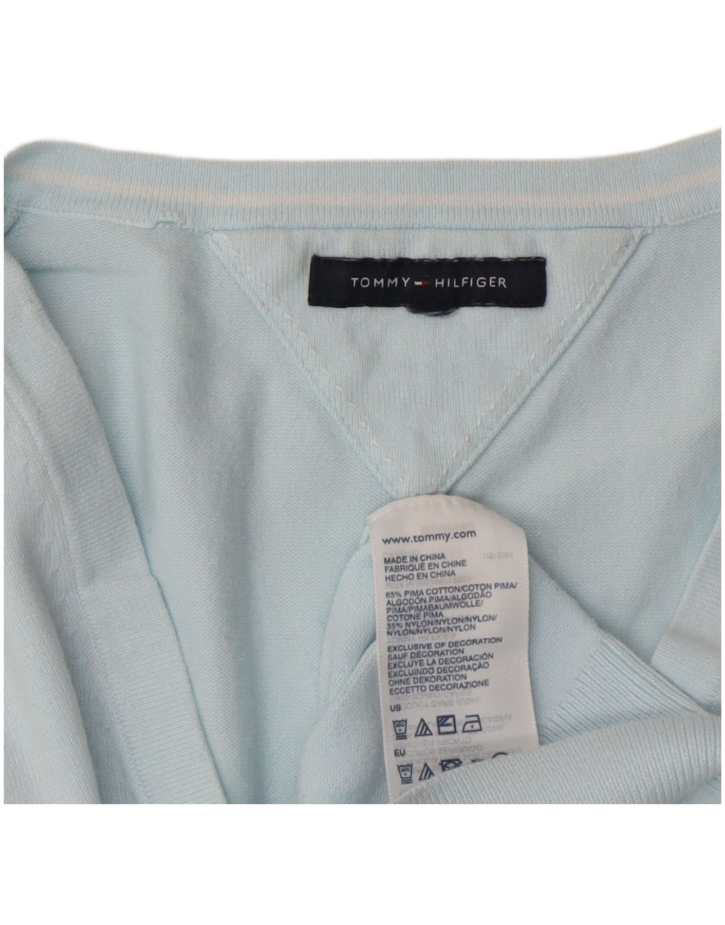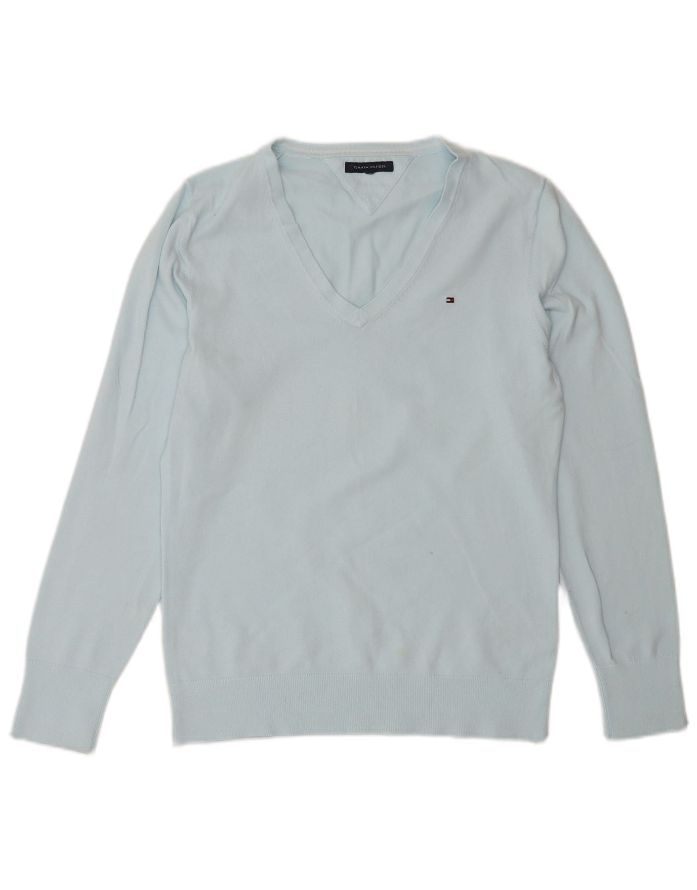 TOMMY HILFIGER Womens V-Neck Jumper Sweater UK 10 Small Blue Cotton