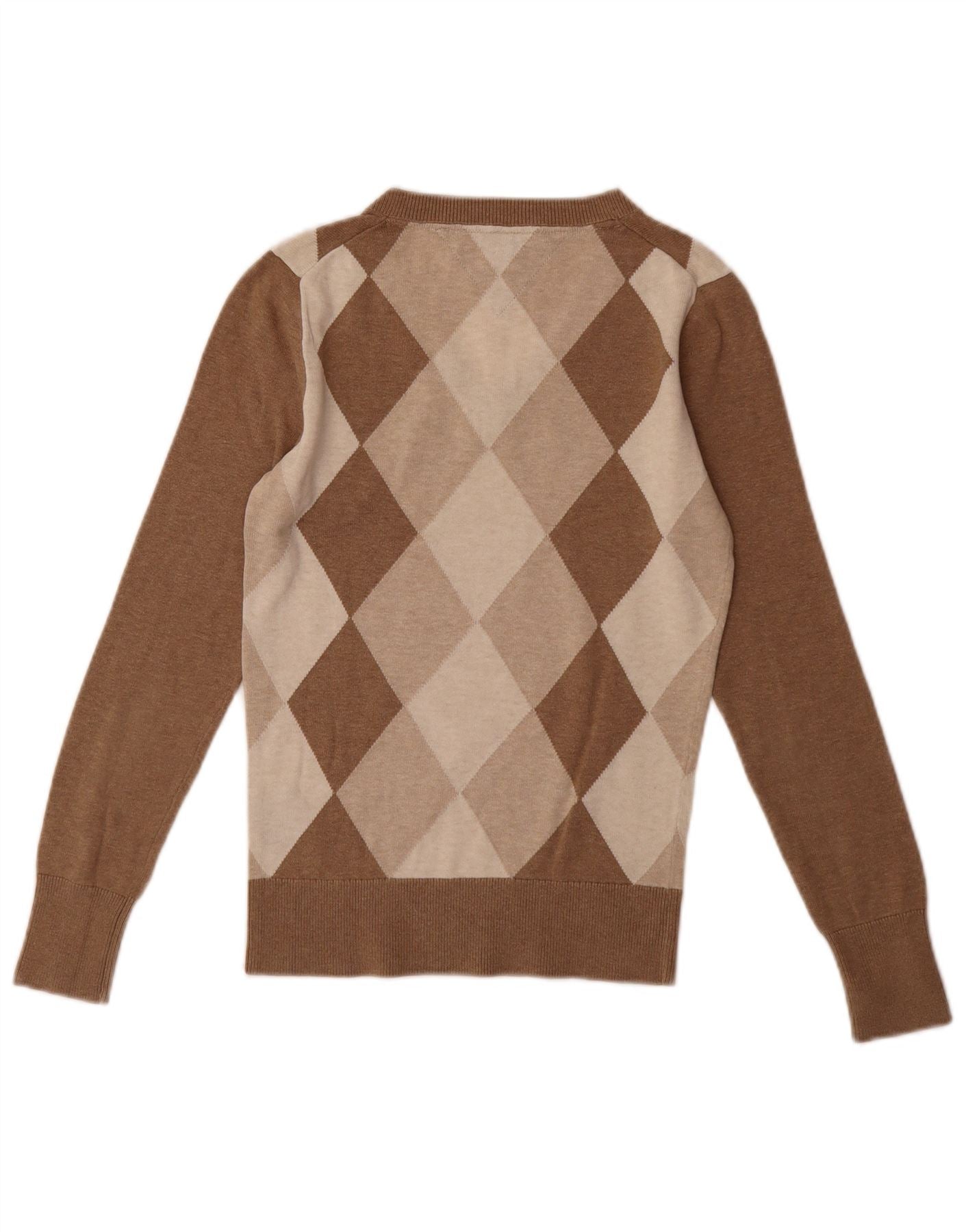 TOMMY HILFIGER Maglione da donna con scollo a V UK 10 piccolo marrone