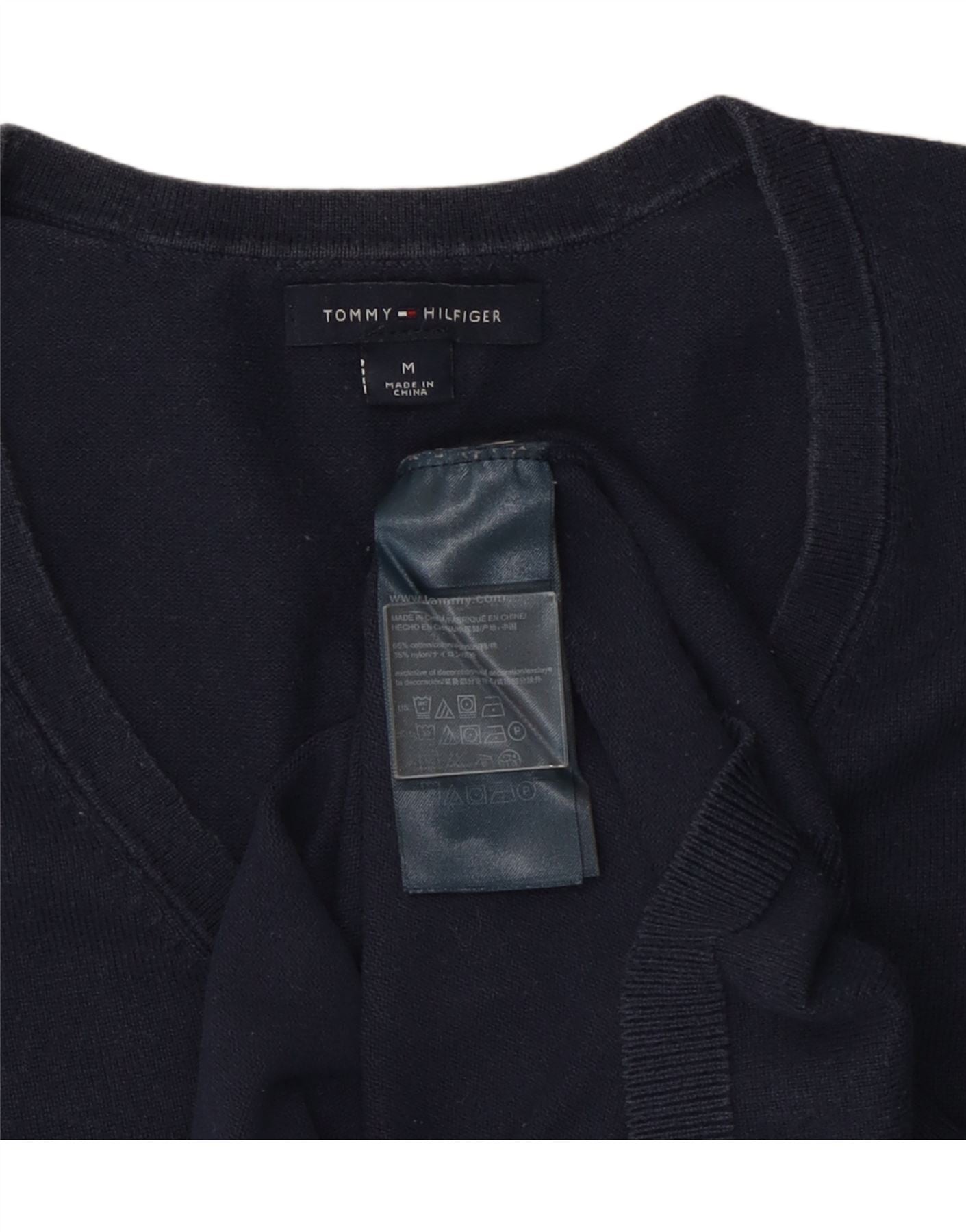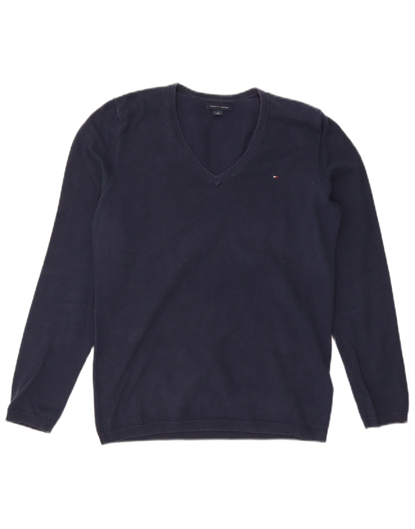 TOMMY HILFIGER Womens V-Neck Jumper Sweater UK 12 Medium Navy Blue Cotton