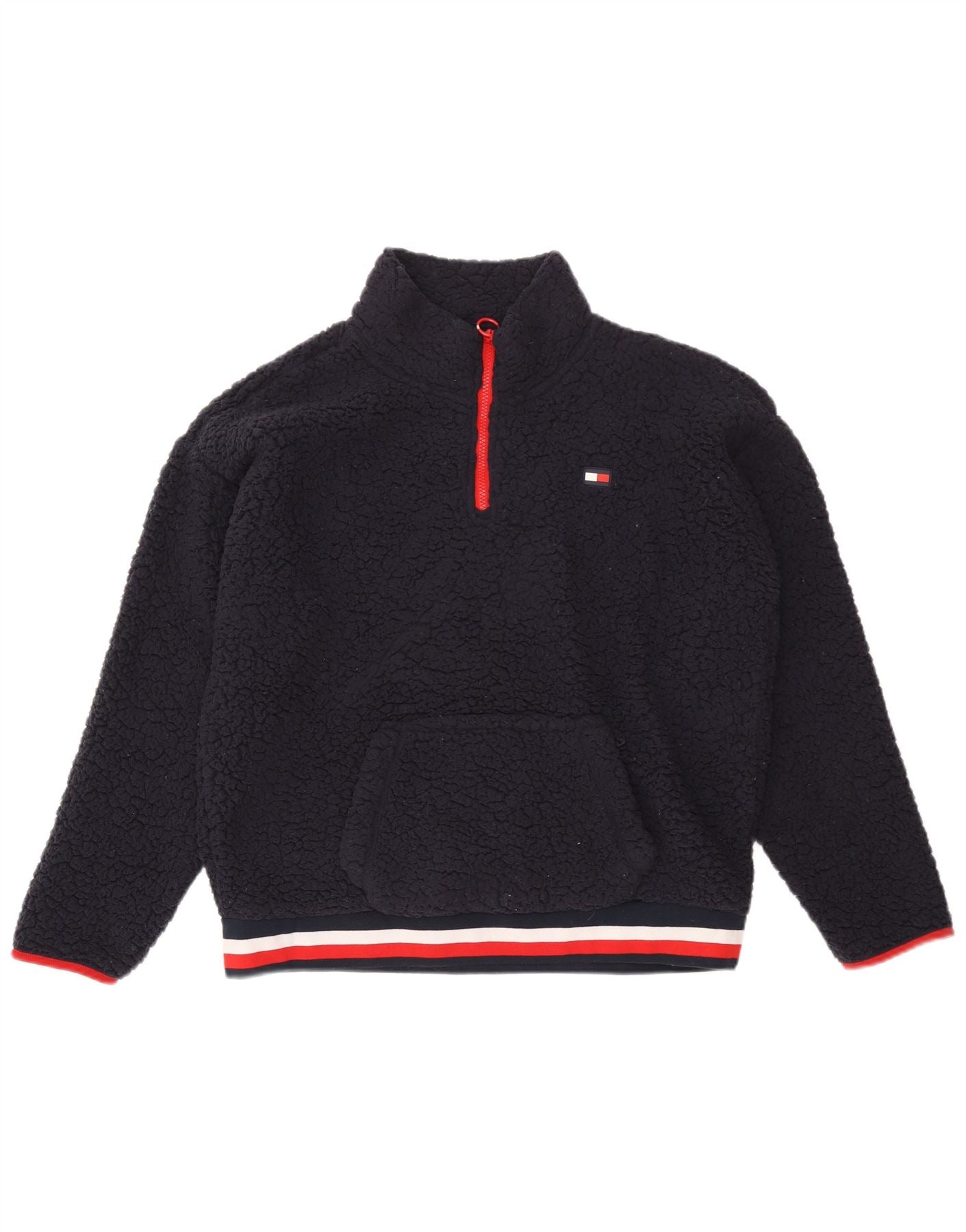 TOMMY HILFIGER Maglione in pile da donna con collo e zip UK 18 XL Poliestere blu navy