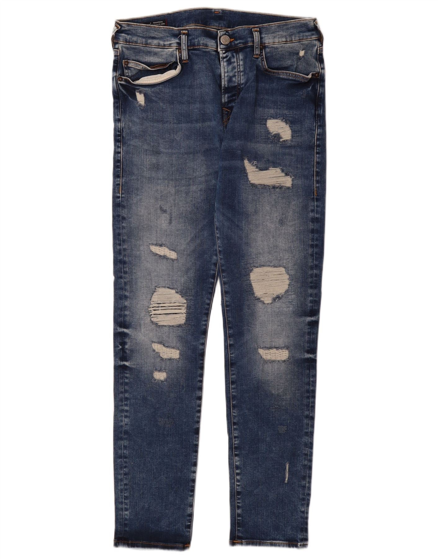 TRUE RELIGION Mens Distressed Skinny Jeans W34 L32 Blue Cotton
