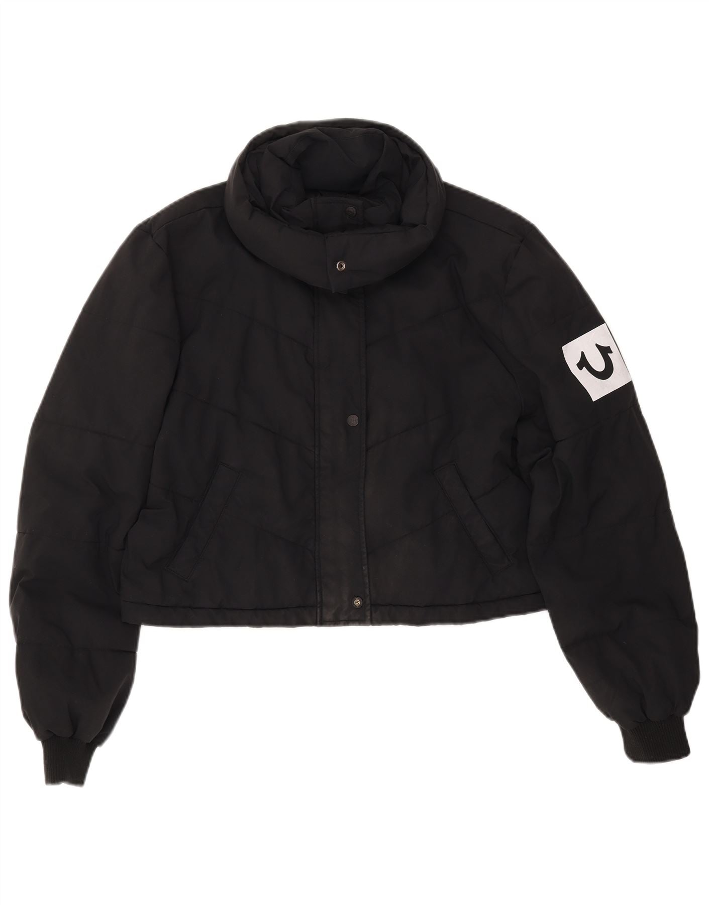 TRUE RELIGION Giacca imbottita corta da donna UK 16 Grande poliestere nero