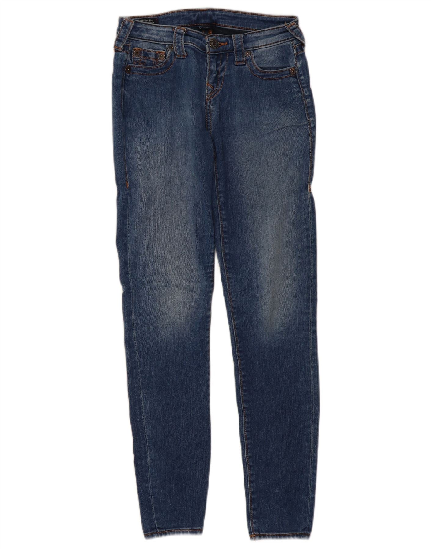 TRUE RELIGION Womens Mid Rise Super Skinny Jeans W26 L29 Blue Cotton