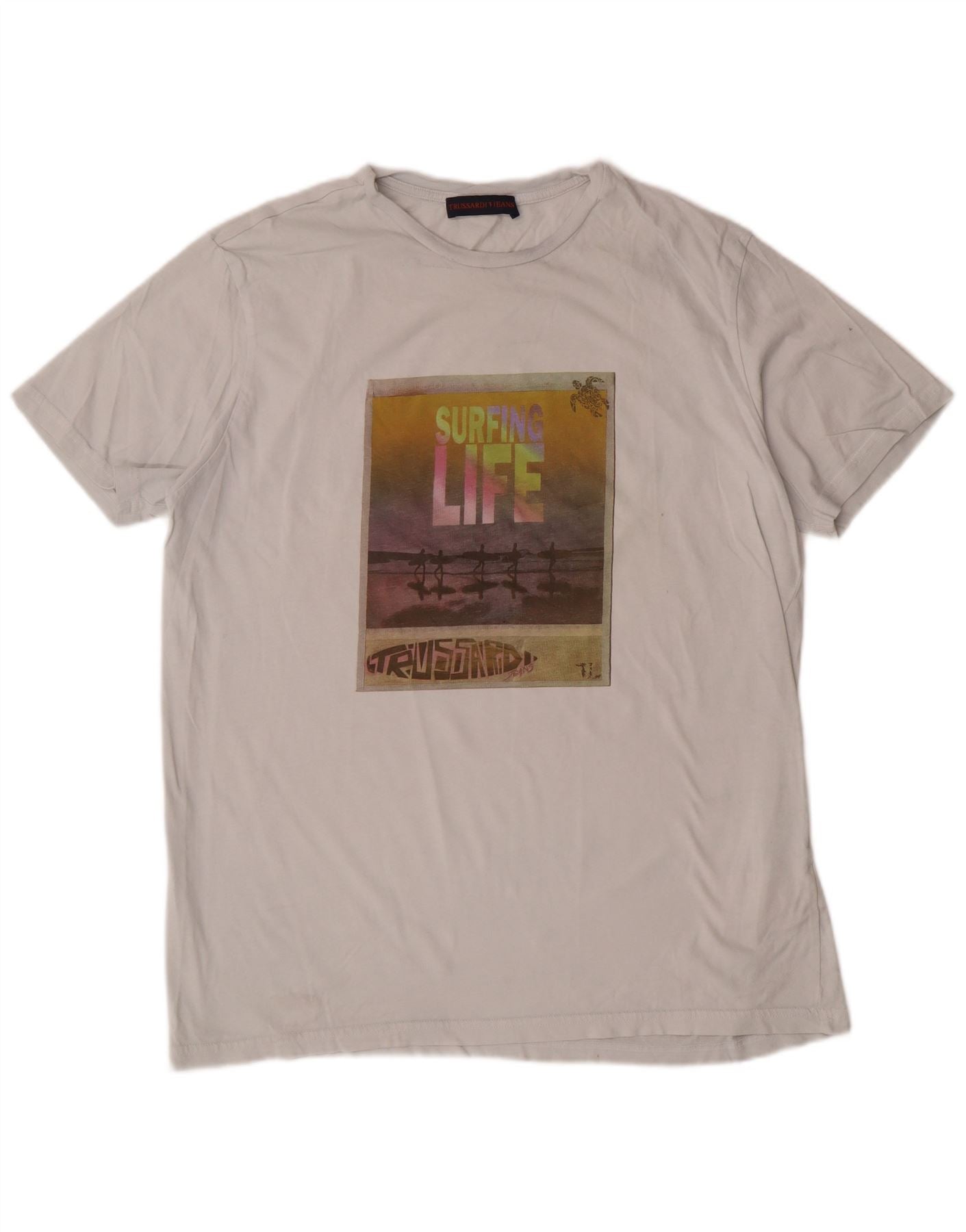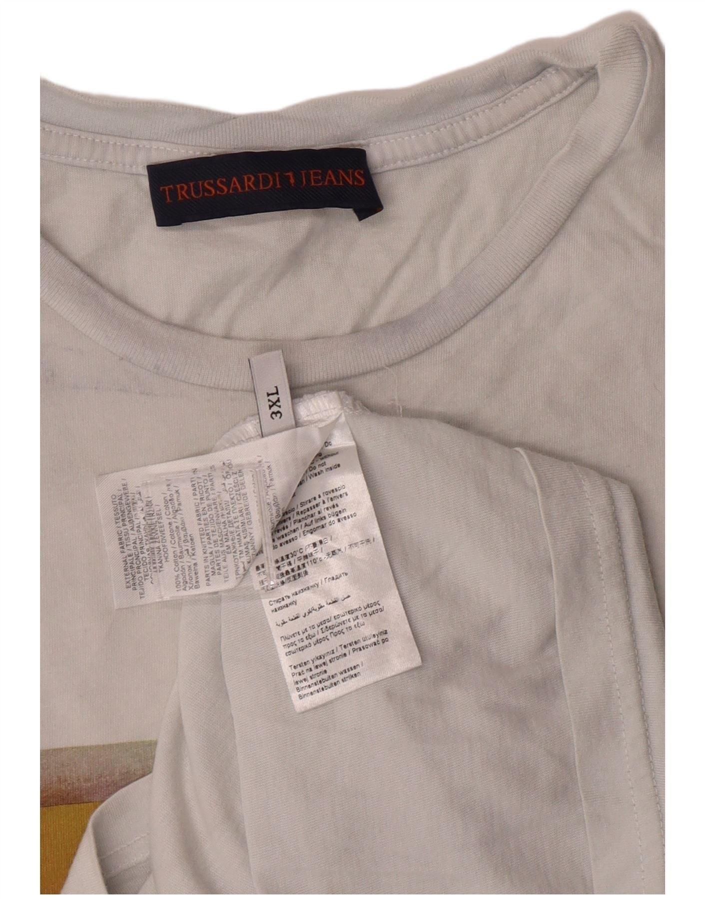 TRUSSARDI JEANS T-shirt grafica da uomo Top 3XL Cotone bianco