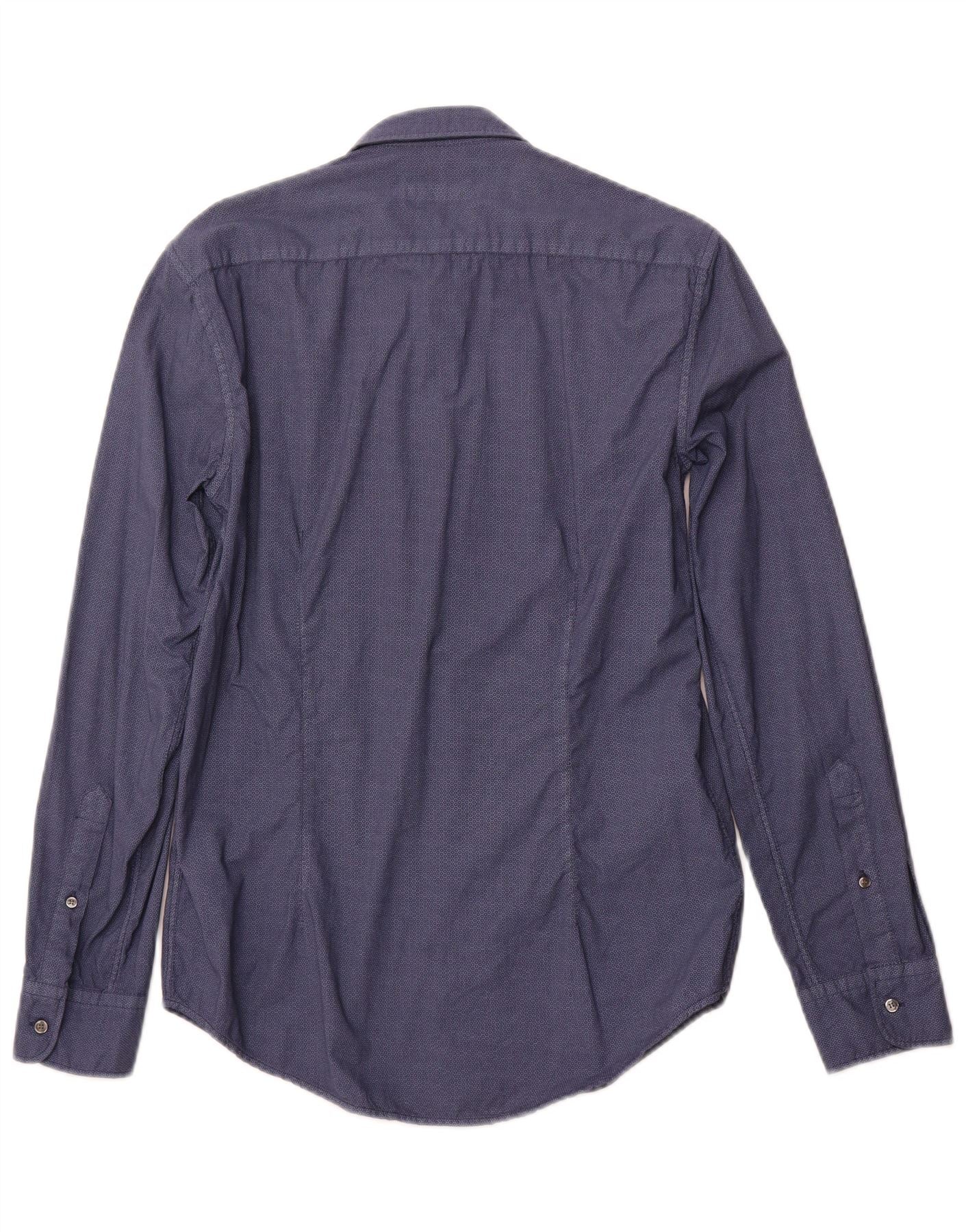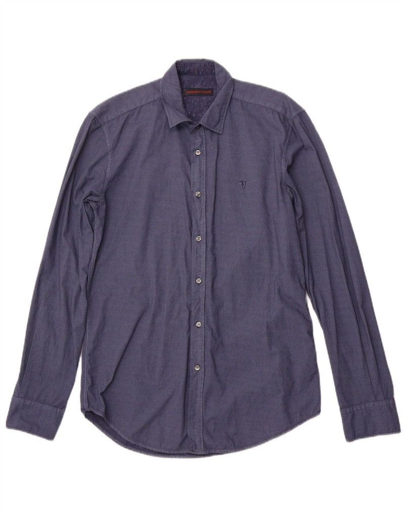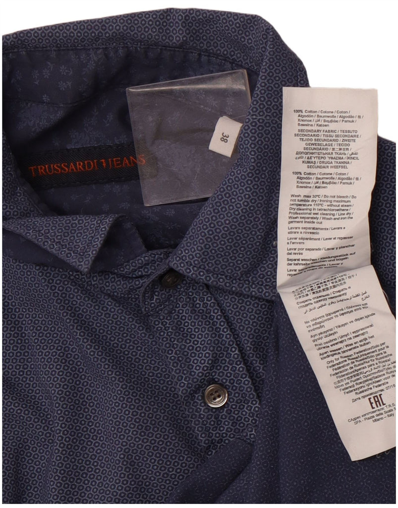 Camicia da uomo TRUSSARDI JEANS taglia 38 media in cotone geometrico blu navy