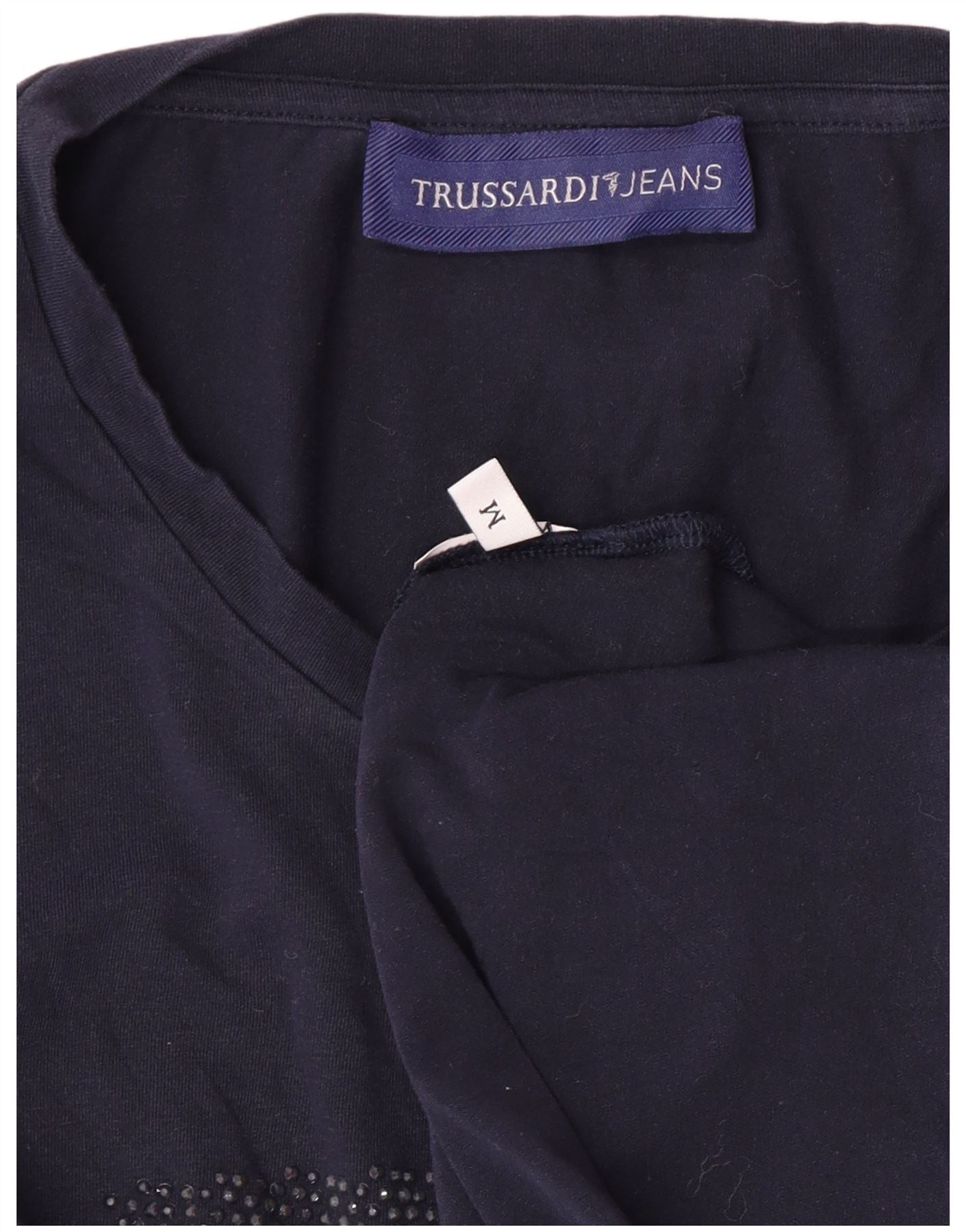 TRUSSARDI JEANS T-shirt grafica da donna Top UK 12 Medium Navy Blue