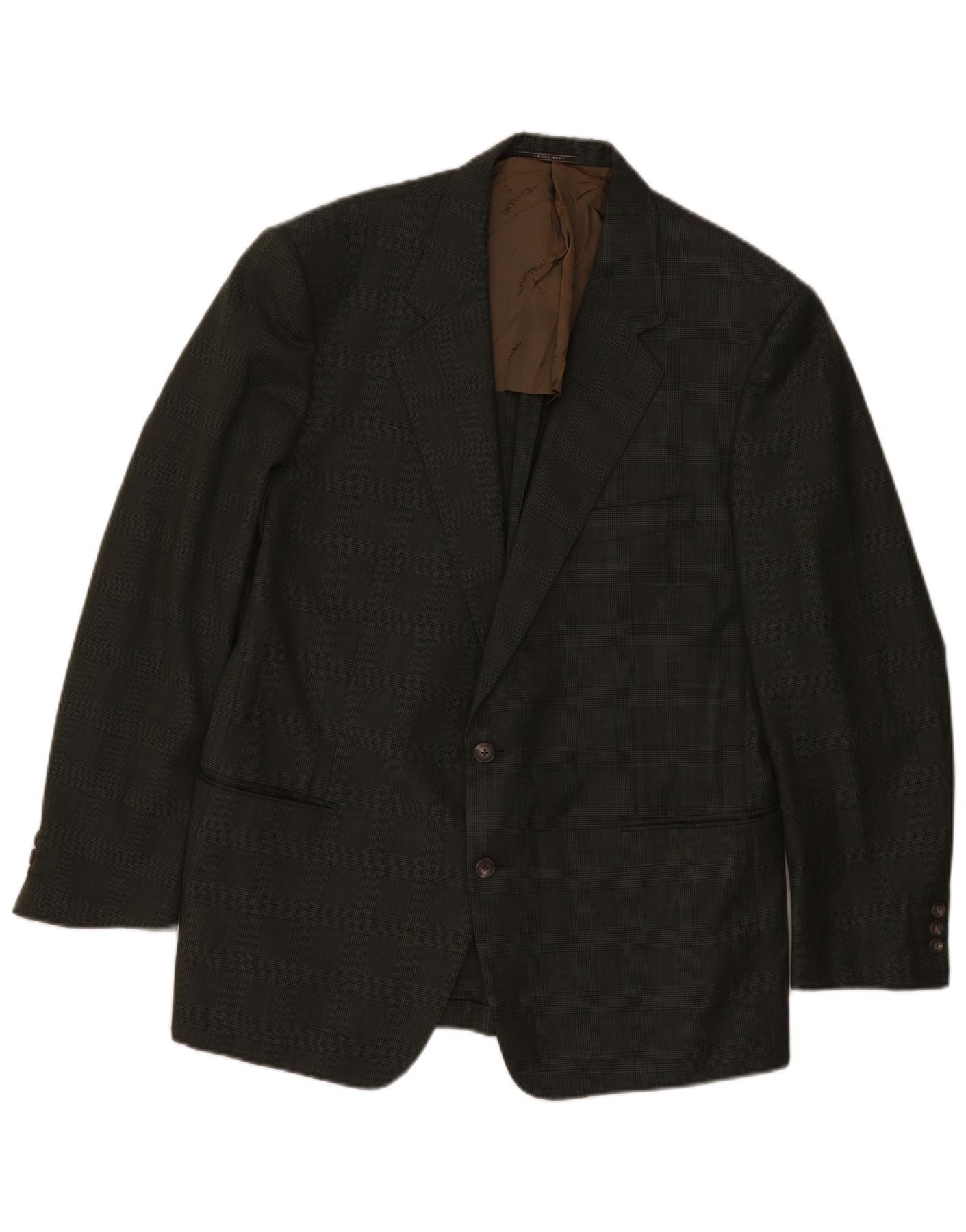 Giacca Blazer da Uomo a 2 Bottoni TRUSSARDI IT 54 2XL Lana a quadri Kaki