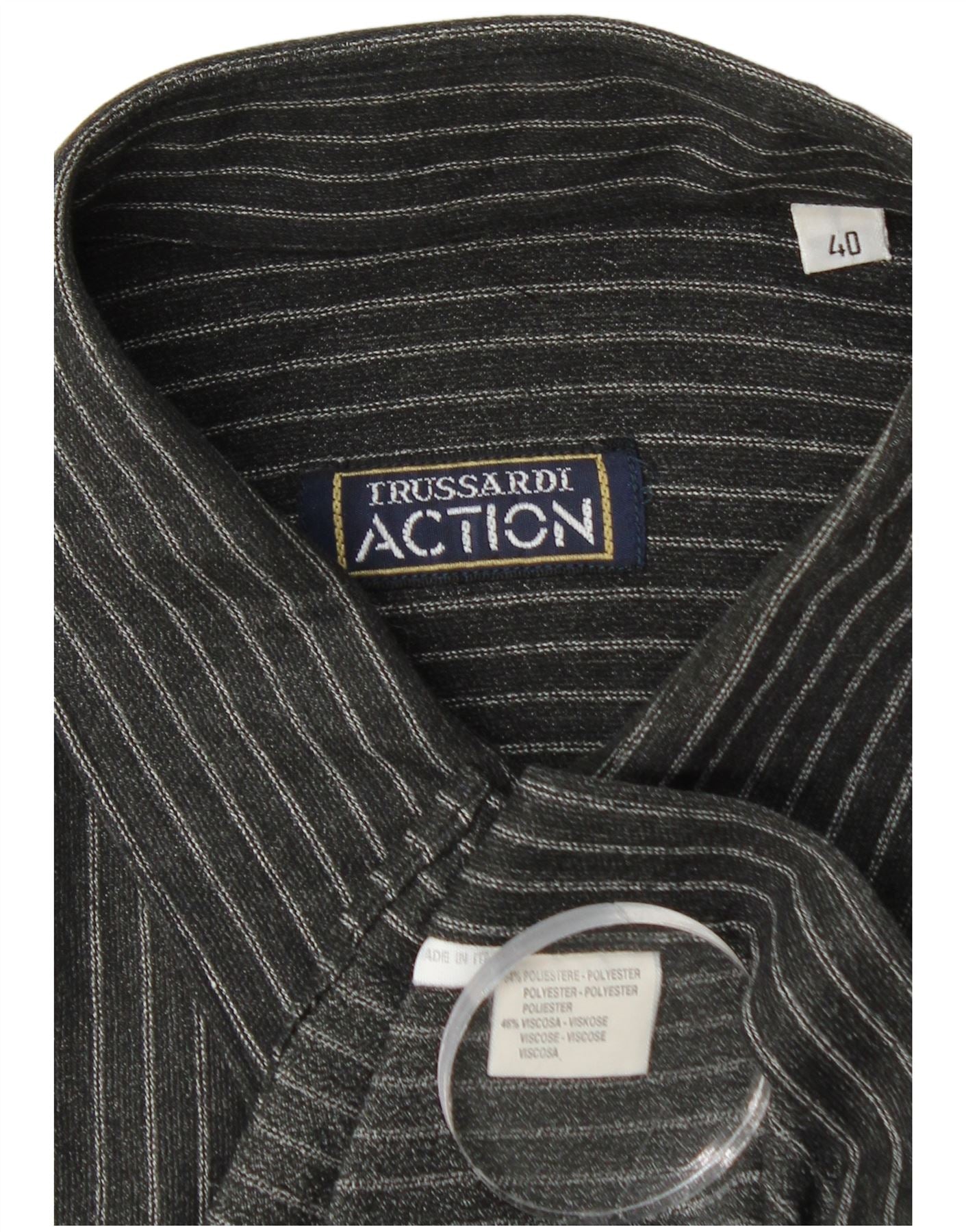 Camicia Trussardi Uomo Taglia 40 Media Poliestere Gessato Nero
