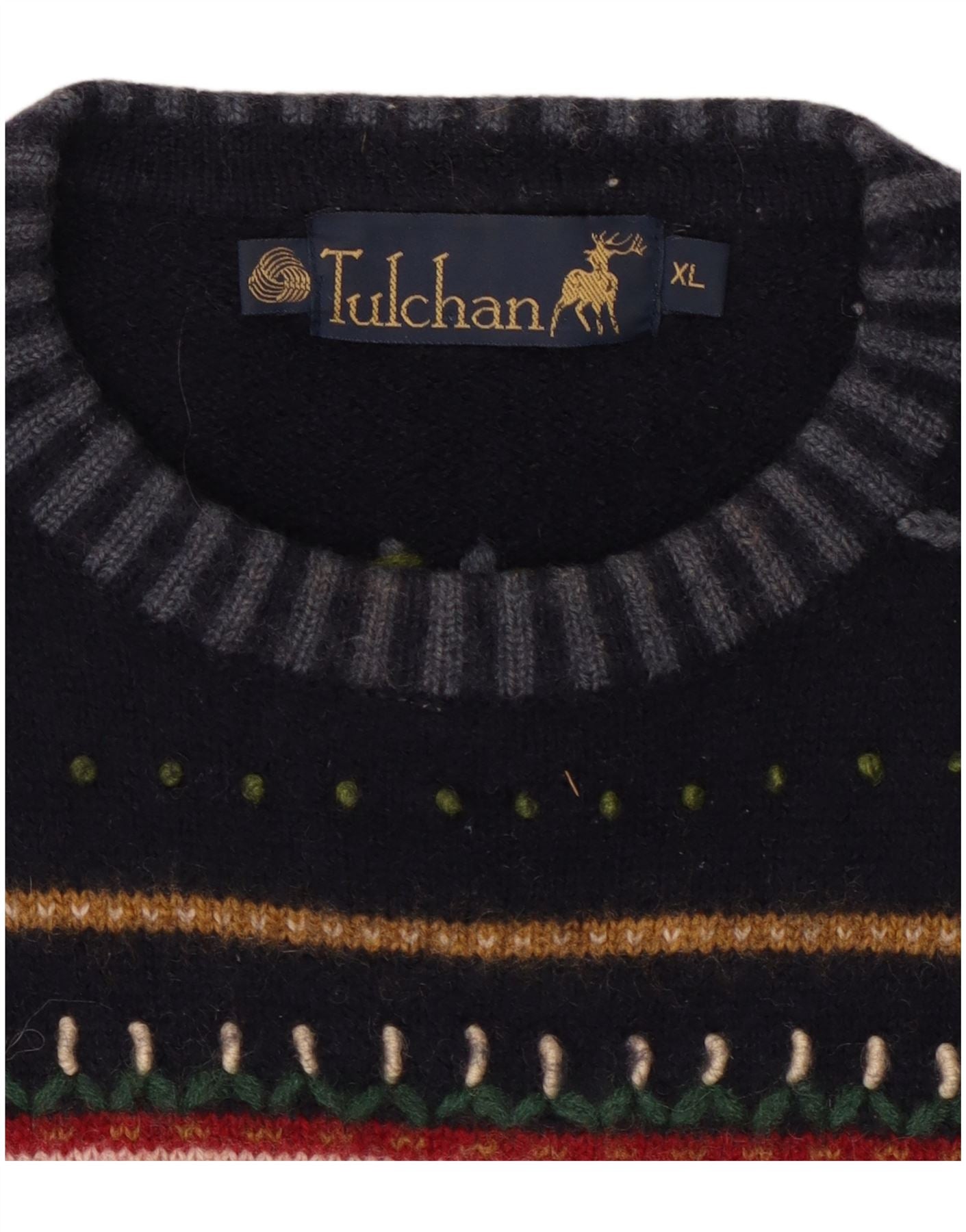 TULCHAN Maglione maglione girocollo da donna UK 18 XL Lana Fair Isle blu navy