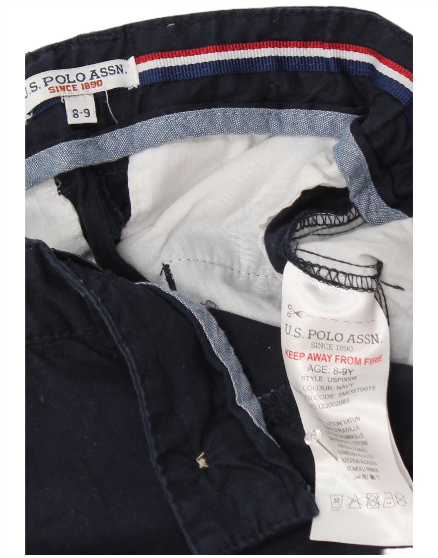 U.S. POLO ASSN. Boys Straight Chino Trousers 8-9 Years W24 L23 Navy Blue